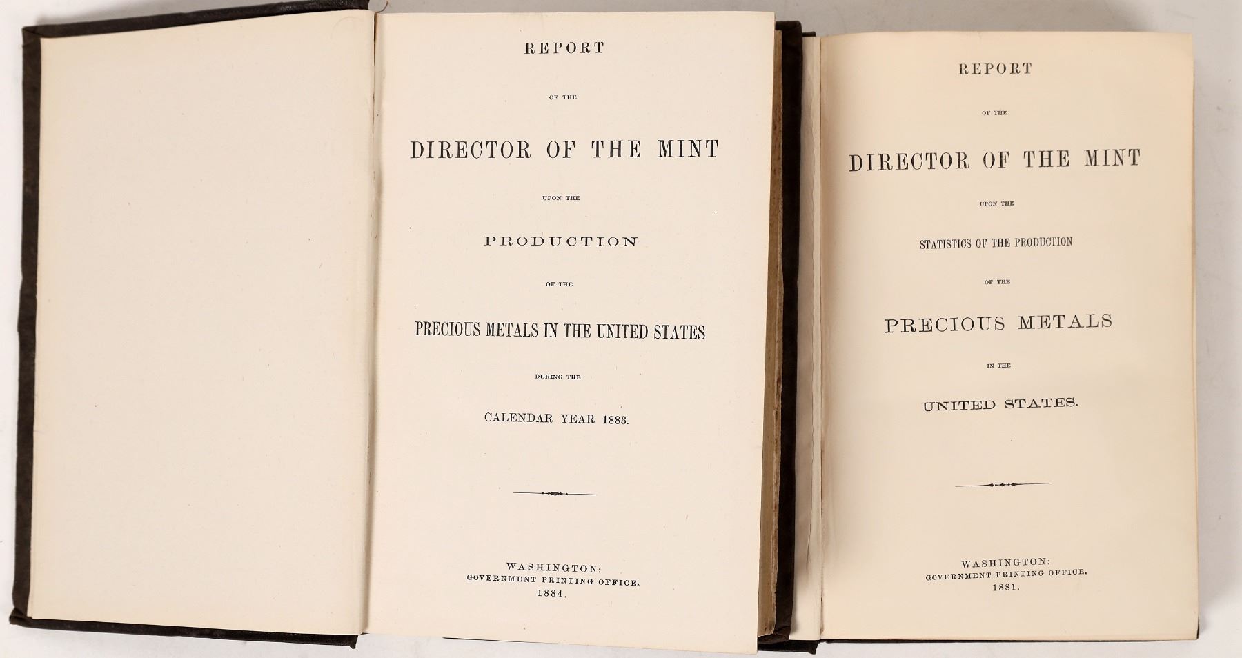 2 key mining references. Production of Gold and Silver in the United States by Burchard, 1880 and 1883. State breakdown for metals production and general statistics from the Director of the MInt.