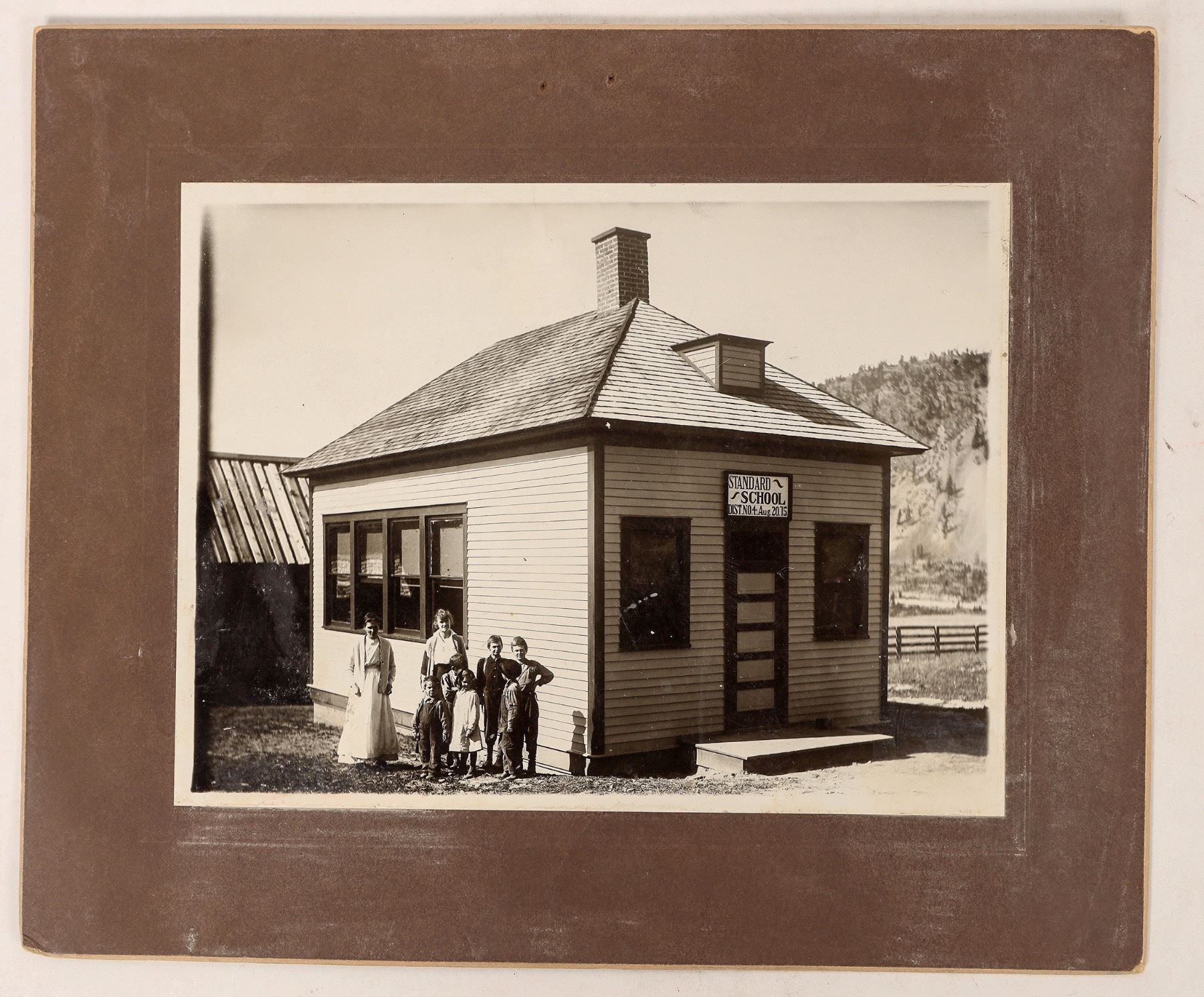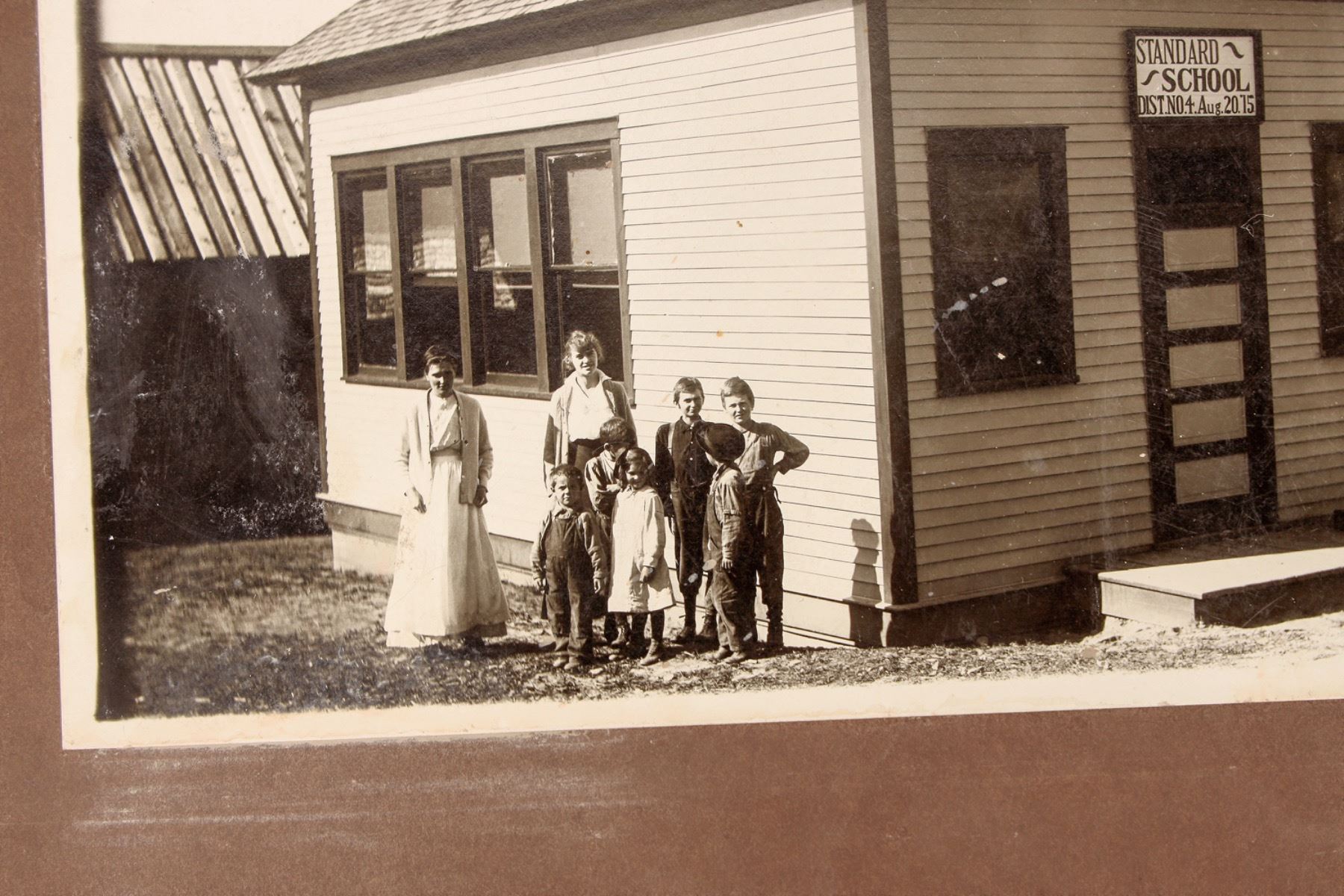 6x8" photo of Divide, MT Standard School with ladies and children in front. Good contrast, a few small image loss spots.[ Divide Montana