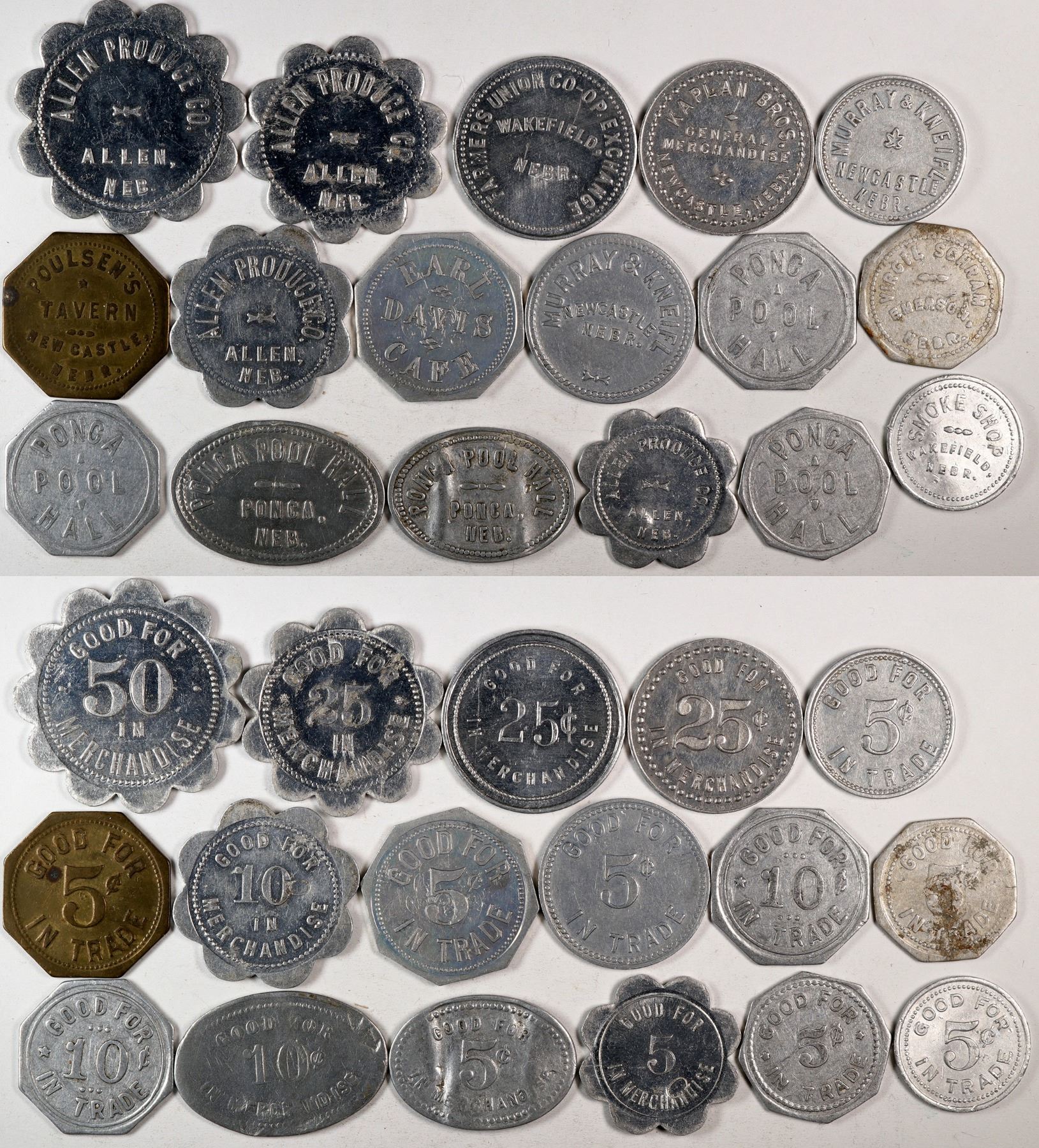 Tokens from Dixon county: Allen (5), Ponca (5), Newcastle (4), Wakefield (2), Emerson (1).