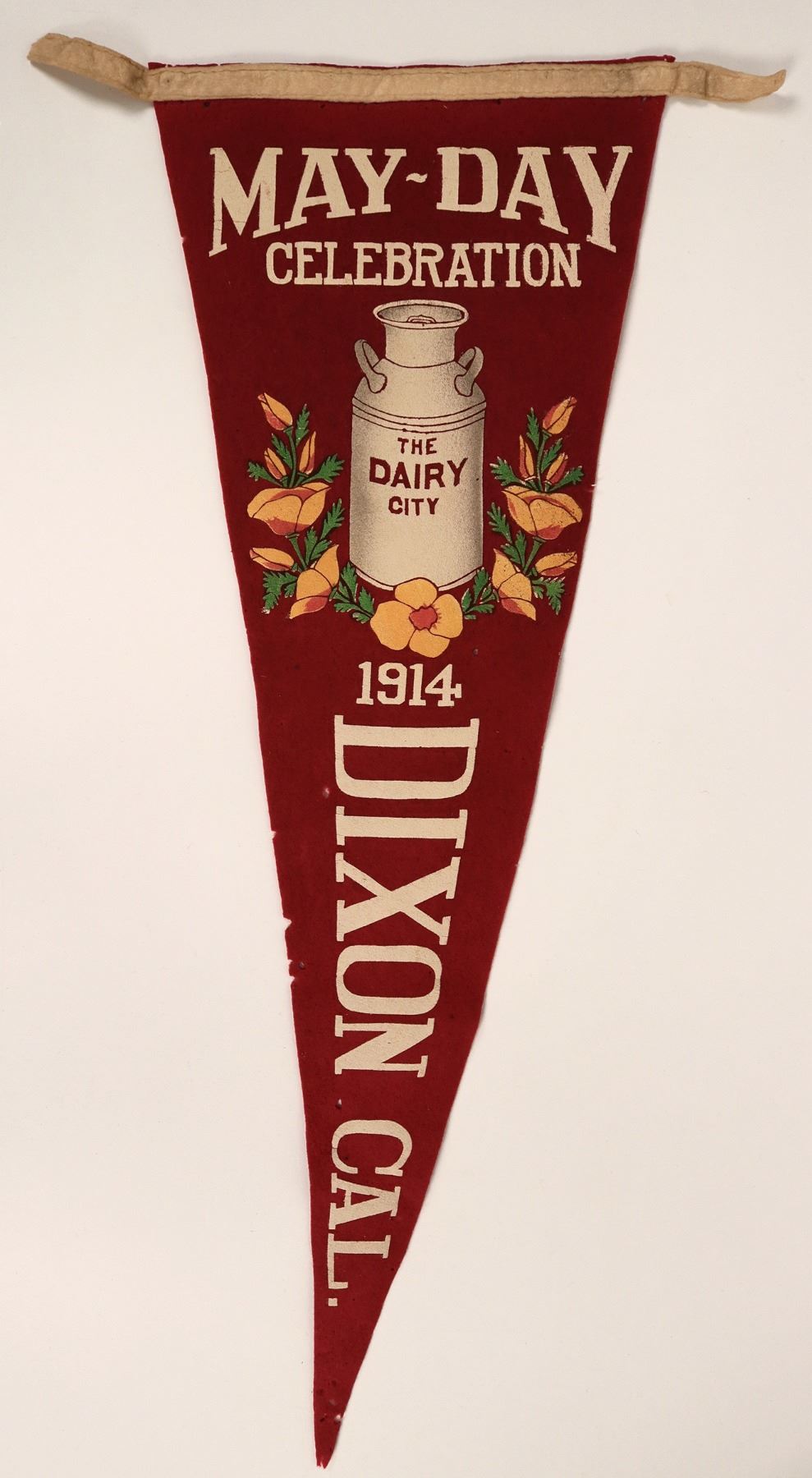 A Dixon May day Pennant that measures 28". Very bright colors but some minor moth damage.
