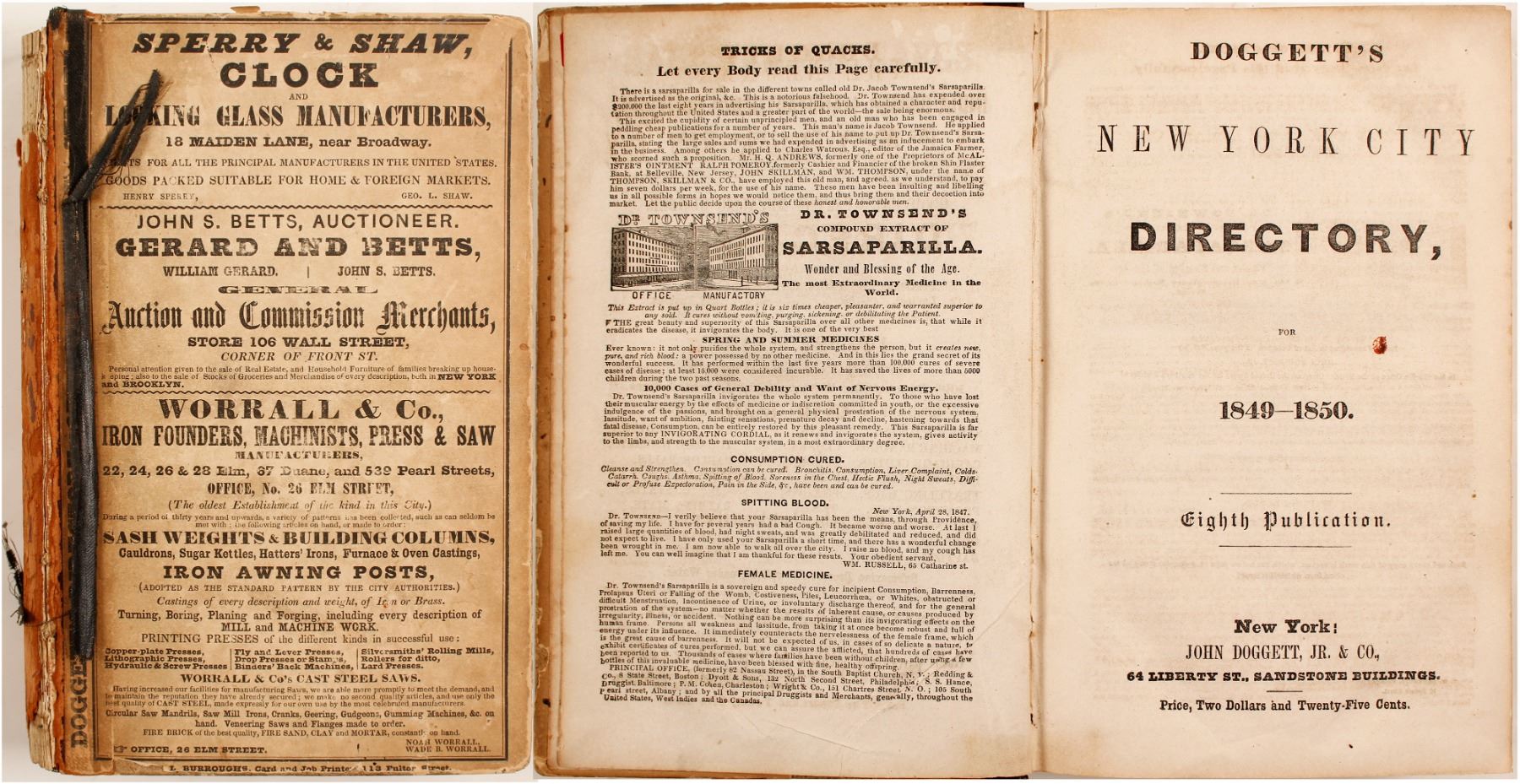 Doggettís New York City Directory for 1849-1850, John Doggett, Jr. & Co. New York