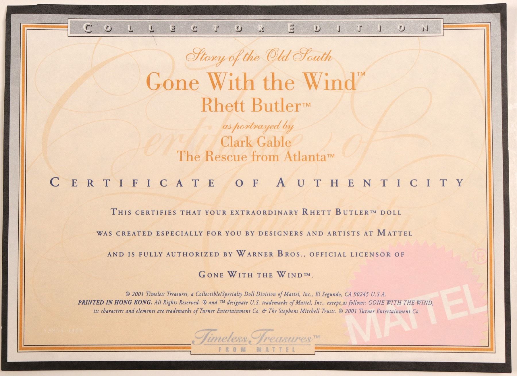Story of the Old South, Gone with the Wind featuring handsome Rhett Butler as portrayed by Clark Gable. The Rescue from Atlanta. Comes with stand. Doll is Approx. 13" tall. From Timeless Treasures fromMattel.