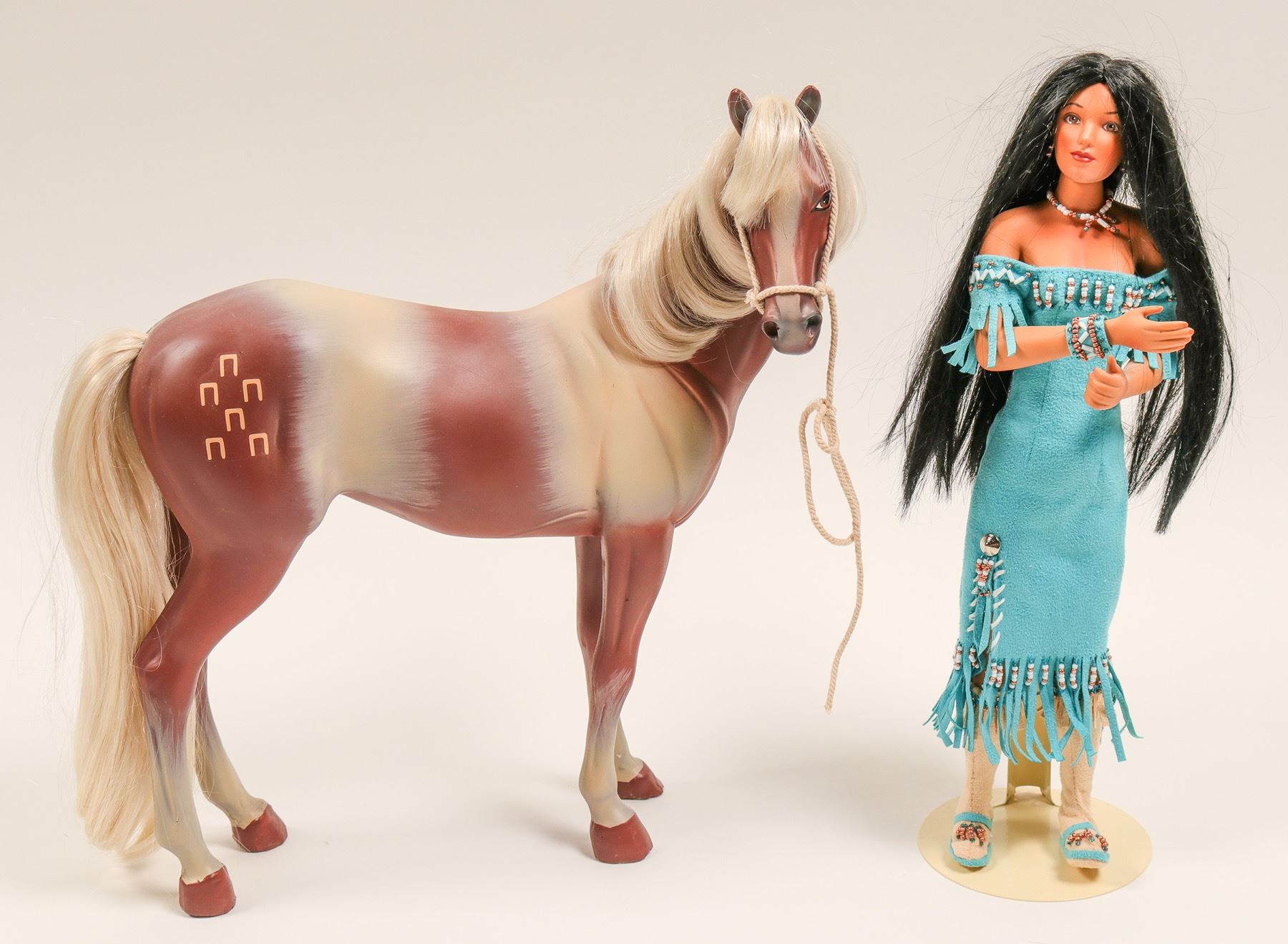 Beautiful pair, 1 Horse is 11" x 13" & 1 Indian Squaw is approx. 18" & comes with a stand. Nice display for any child's room. By the Ashton-Drake Galleries