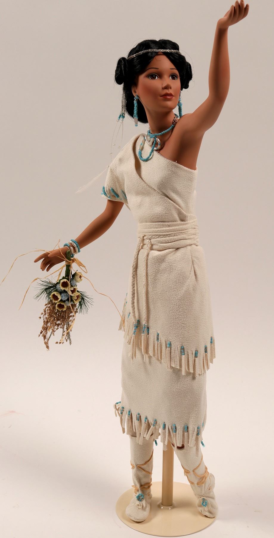 From the Ashton-Drake Galleries, by Artist Sandra Bilotto. Certificate of Authentication, number A 3911. This doll is named "Sun Maiden" she leads the women of her village in a graceful dance of celebration to mark the end of her wedding day. Attire is based on ancient styles of the people of the Southwest.