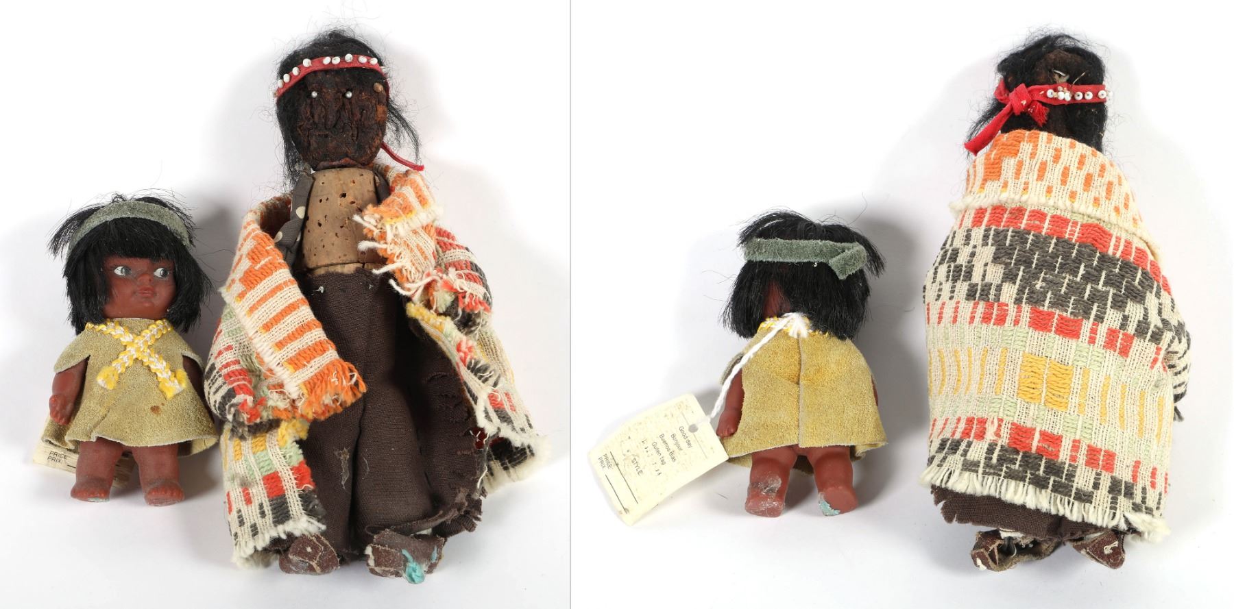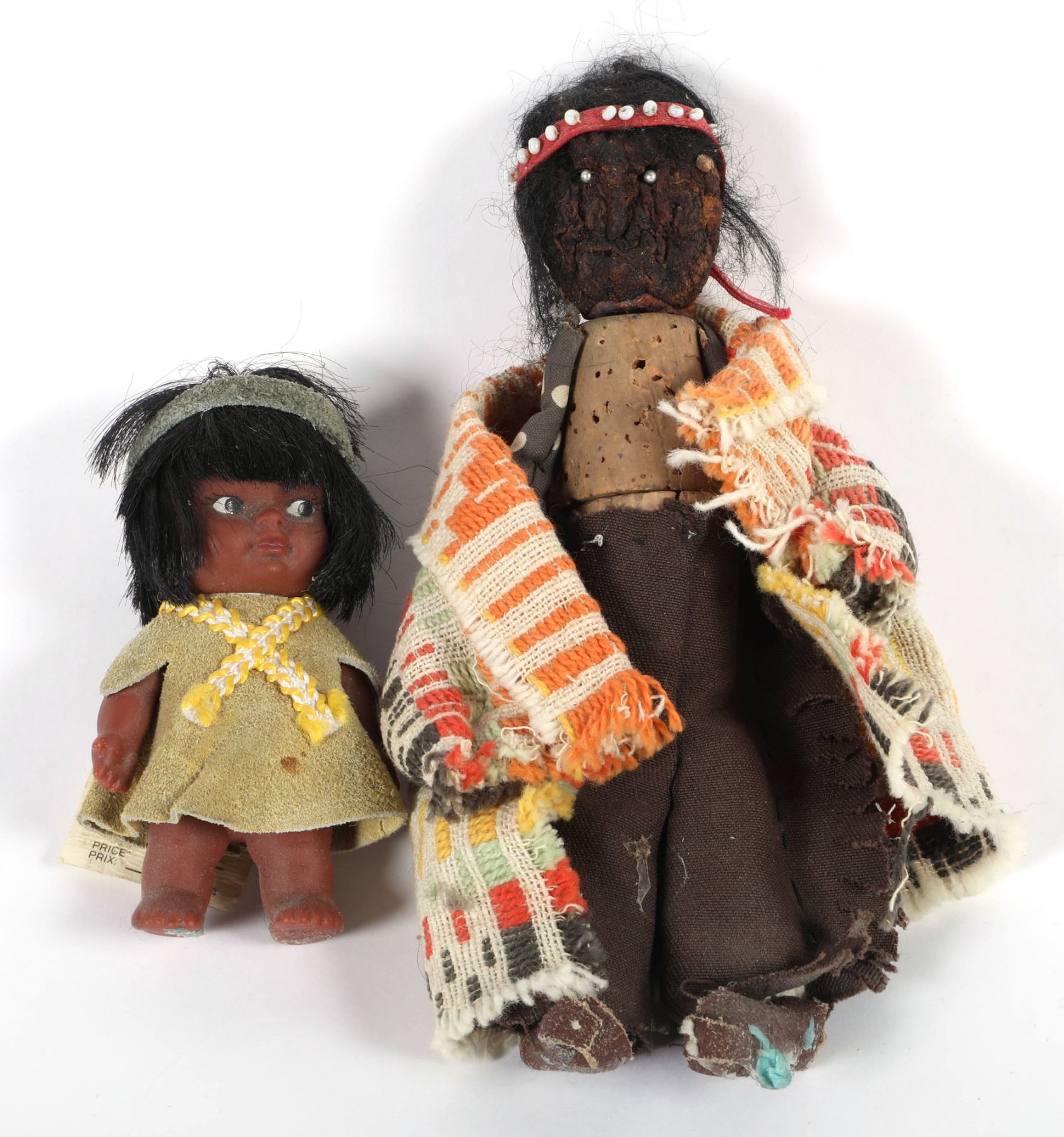 From Quebec Canada, Indian Art/Eskimo. Lot of two dolls. The smaller doll is 2" x 4"; The larger doll is 3" x 7".