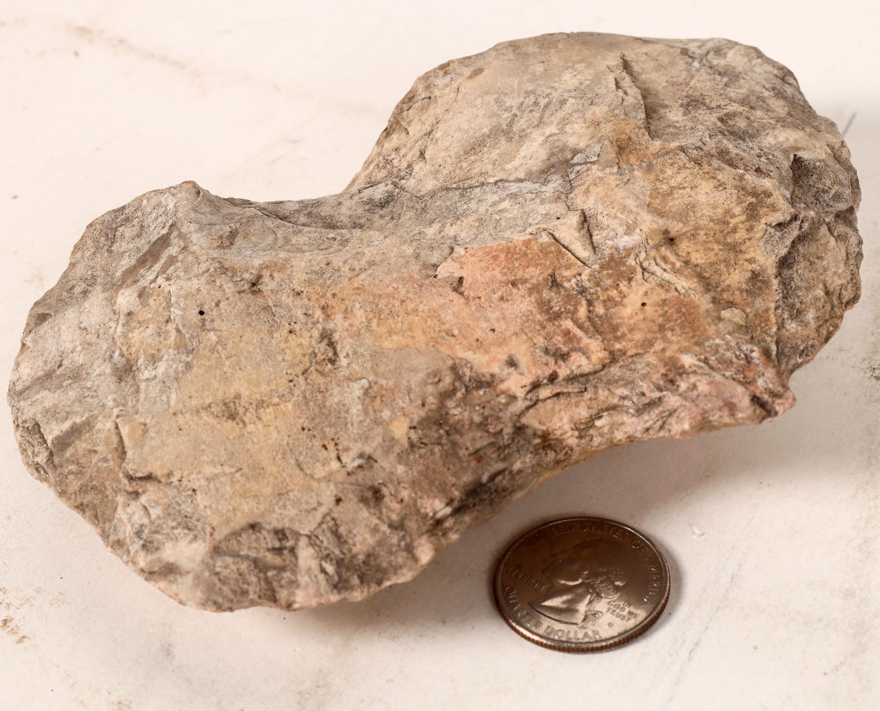 This is a double-bitted stone axe found in Mayes County, Oklahoma. It is 5 in./127 mm in length, 3.5 in. wide at 13 oz. Beautifully shaped for large work where the smaller hand axe and celt were not enough tool for the job. From the Bracken collection. Please see photo for details. Oklahoma