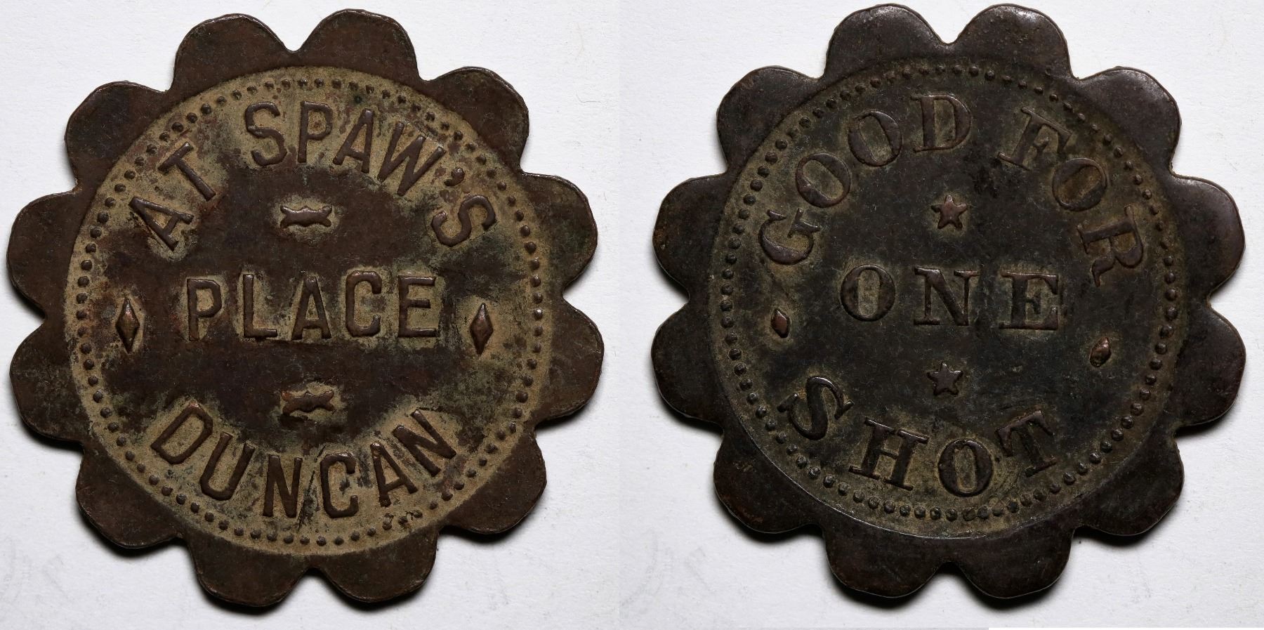 At Spaw's /Place/Duncan//G.F./One/Shot. 12 Scal. , Br., 35mm. R-8.