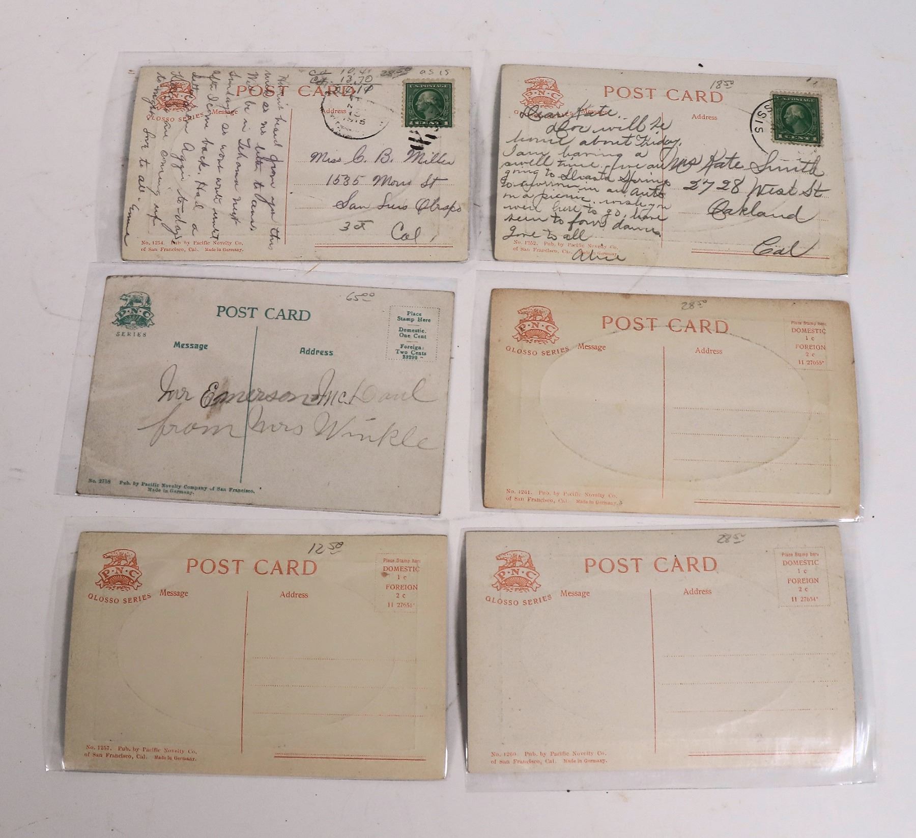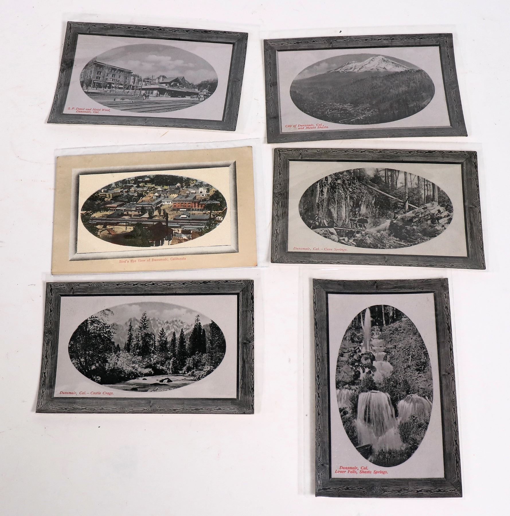 Lot of 6. Framed post cards. Two postmarks : Sisson Ca. : Street level view: Castle Crags, S.P. depot and Hotel Weed, Mt. Shasta, Cave Springs, Lower Falls Shasta Springs. Birdseye : City of Dunsmuir. California 1915 Ken Prag Collection California Ken Prag Collection