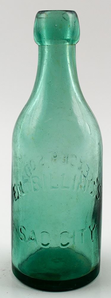 E.L Billing's ( au) / Sac City // Reverse: Geyser Soda( ad) // : 1872-1879: Pale green , clean and shiny. Very small amount of surface wear , and scratching.Nice 1/4" bubble , in the blob top, left front side. If cleaned , this specimen would sparkle. !! HWAC# 30506 Date: Location: Sacramento, California