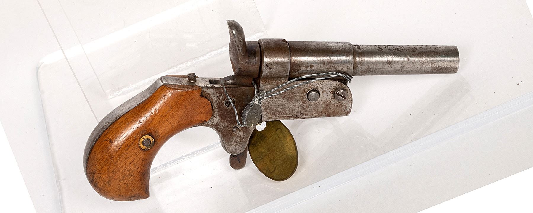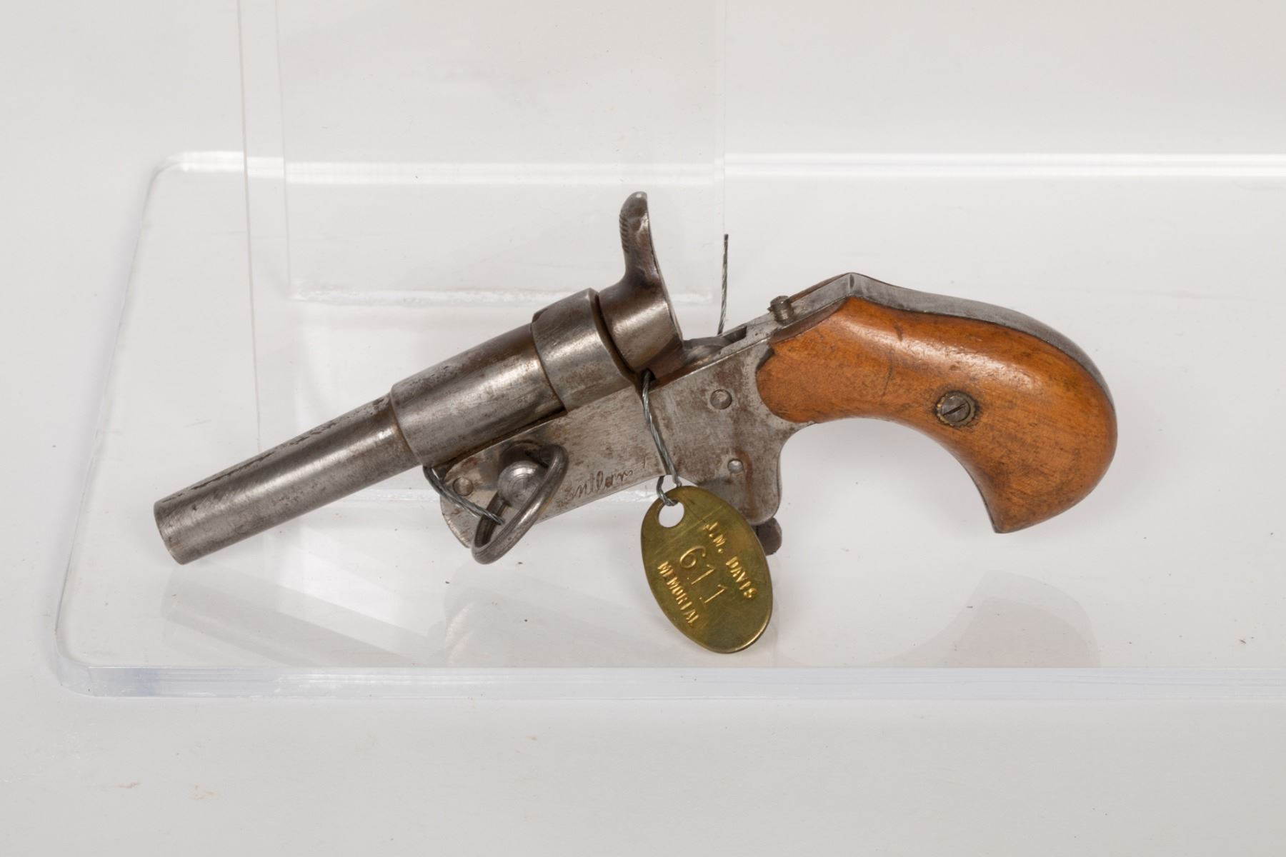 Pistol, ENTLARAT, Percussion, spur trigger, wood grips. SN: N/A, JMD Oval Tag: 611, Condition: Good, >