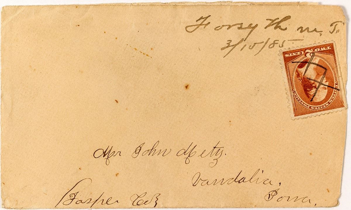 Manuscript date of March 15, 1885 pre-dates earliest manuscript example in Shellen & Dunn. They only list one manuscript for this town. Post office opened in 1882. City: Forsyth State: Montana Date: 1885 ID: 36579