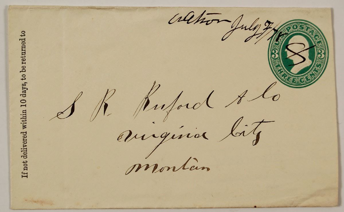 Territorial. Manuscript. July 7, 1878. Two in Shellen and Dunn of this type and five total. City: Watson State: Montana Date: 1878 ID: 36730