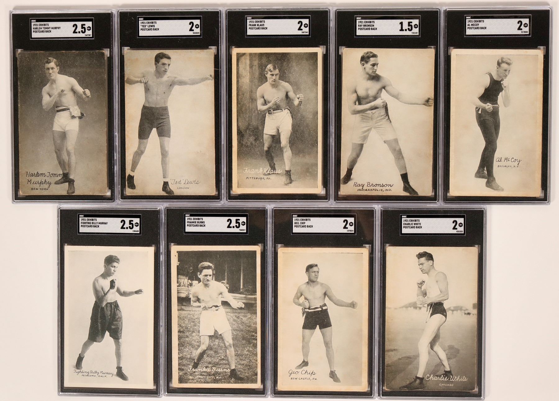Group of nine boxers from the early 20th century. This includes Middleweight George Chip, Middleweight Frank Klaus, Welterweight Ted Lewis and more. This is a group released in the early 20's. All are in good condition. See photos for more details.