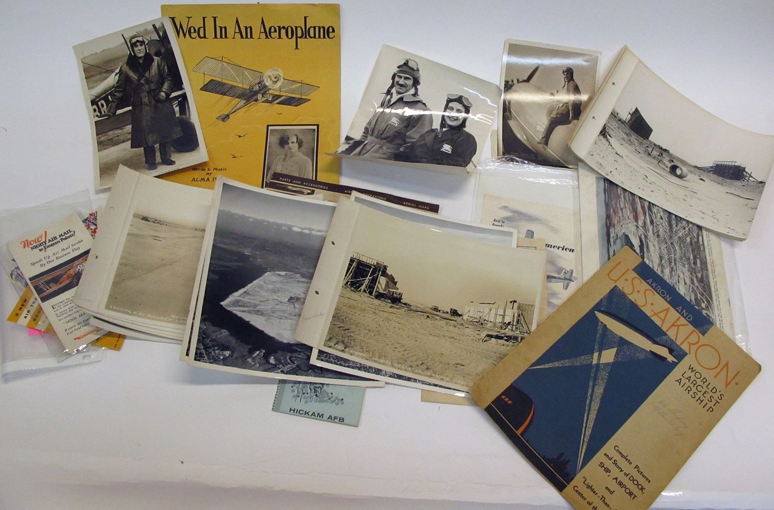 1) Many black & white pictures of the making of an airport "N.Y. International Airport, 1948"; 2) a magazine "USS Akron World's Largest Airship complete with pictures and story of Dock, Ship, & Airport; 3) Black & white picture of Lieut. Harold Bromley, 1929 before his flight from Tacoma to Tokyo, 7/10/1929; Many more pictures and pamphlets. Date: Location: HWAC# 55116