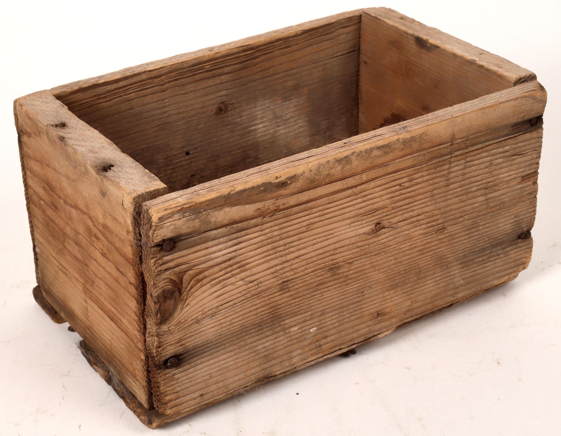 Early wood B H Issacs/Clayton/N. Mex. box. 5x9.5x6", 1 bottom strip missing. New Mexico Clayton Gary Bracken Collection