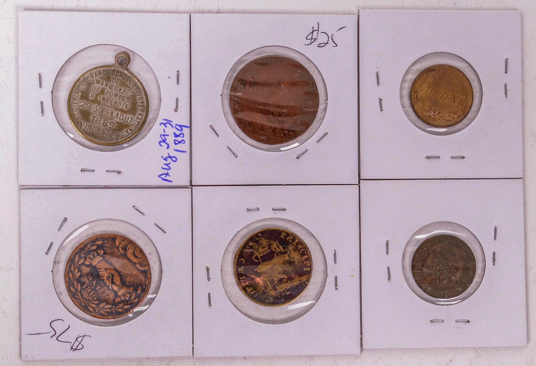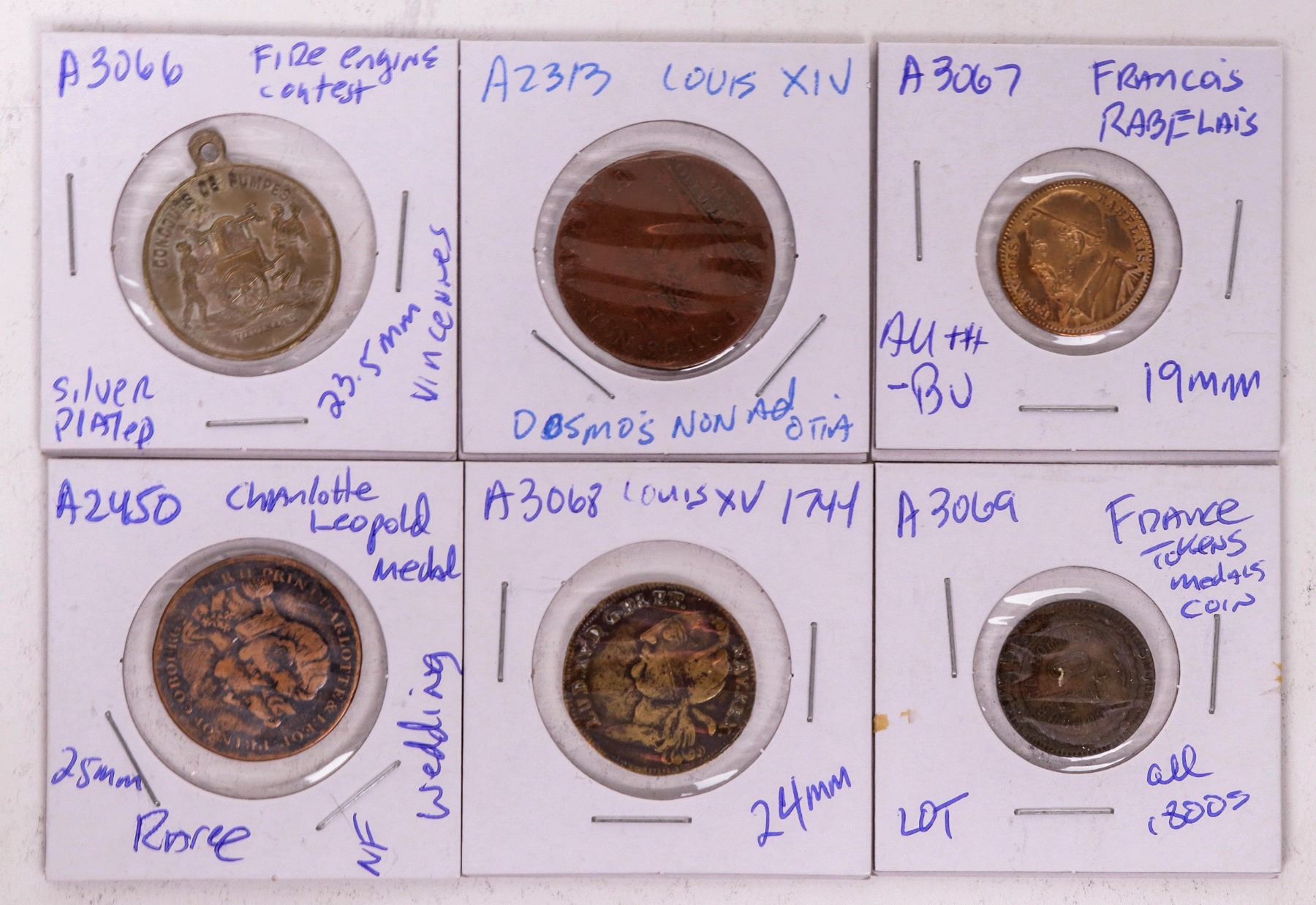 Six medals from France: Louis XIV; Francois Rabelais; Louis XV; Charlotte Leopold; Fire Engine Contest.
