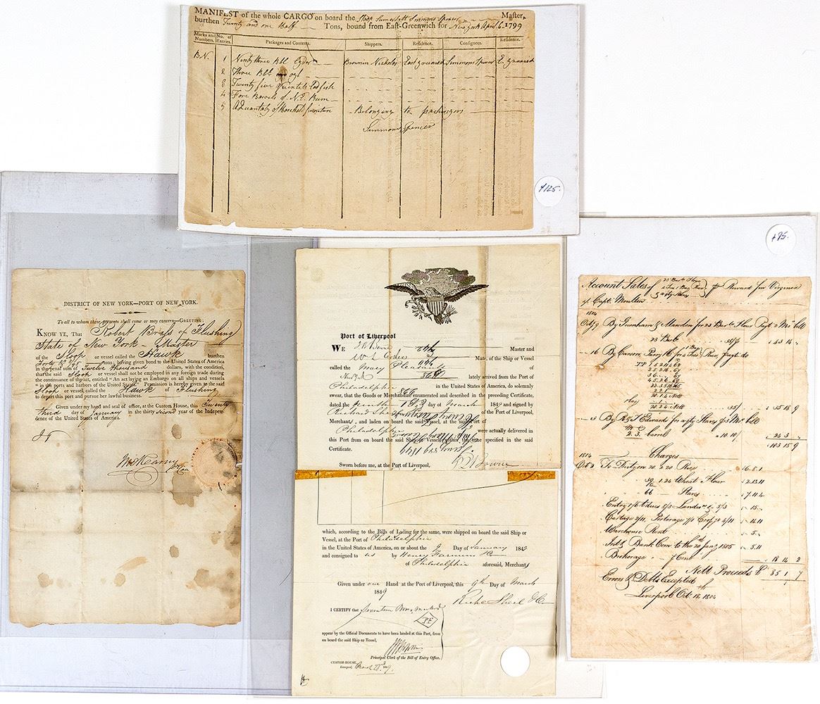 4 Shipping documents and manifests from New York, East-Greenwhich, Virginia, and Boston. City: State: United States Date: hwac# 32571