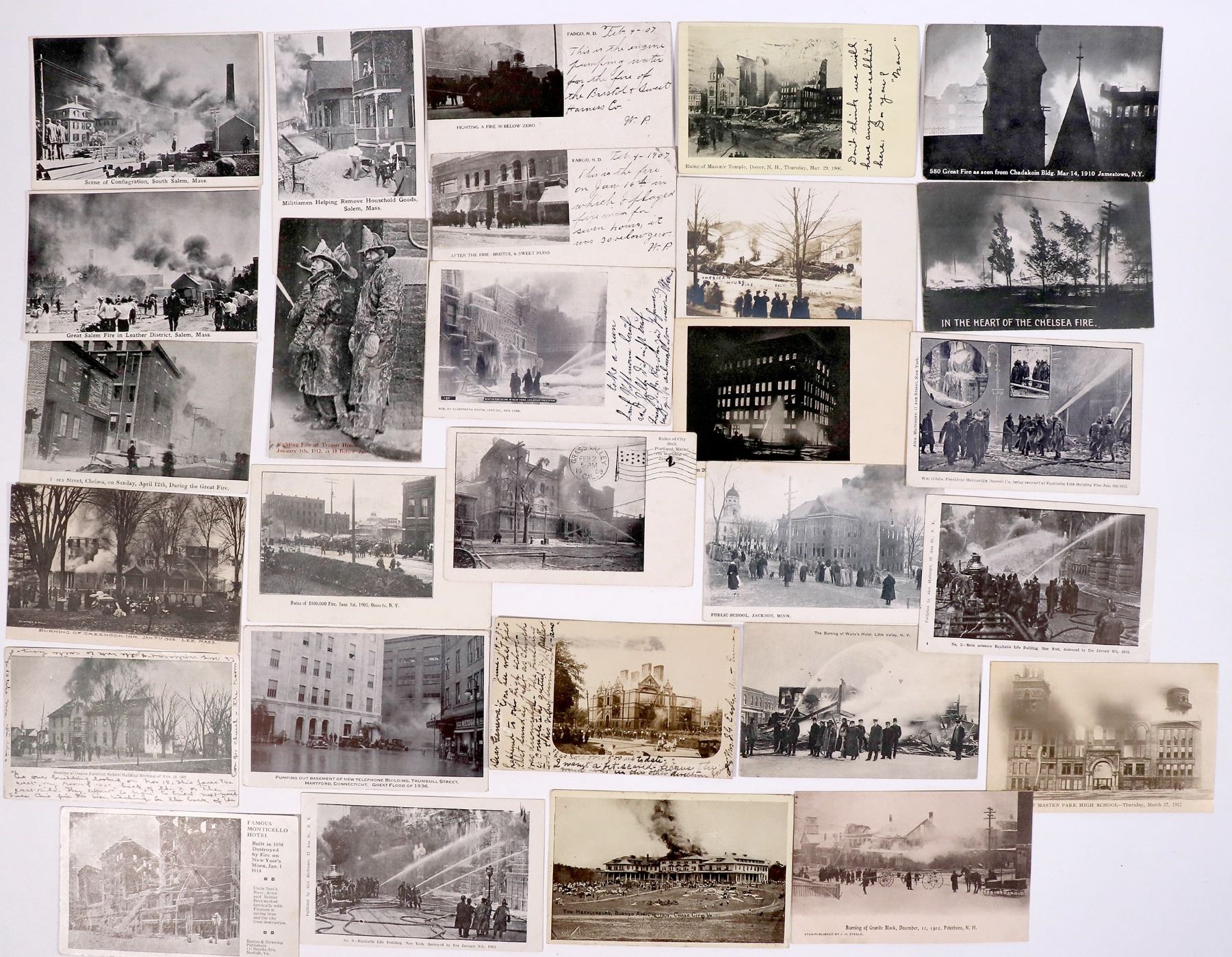 Early Miscellaneous State "Fire in Progress" Postcards (28). All are Black & White, Non-Real Photos, with no duplicates 1903-1918.