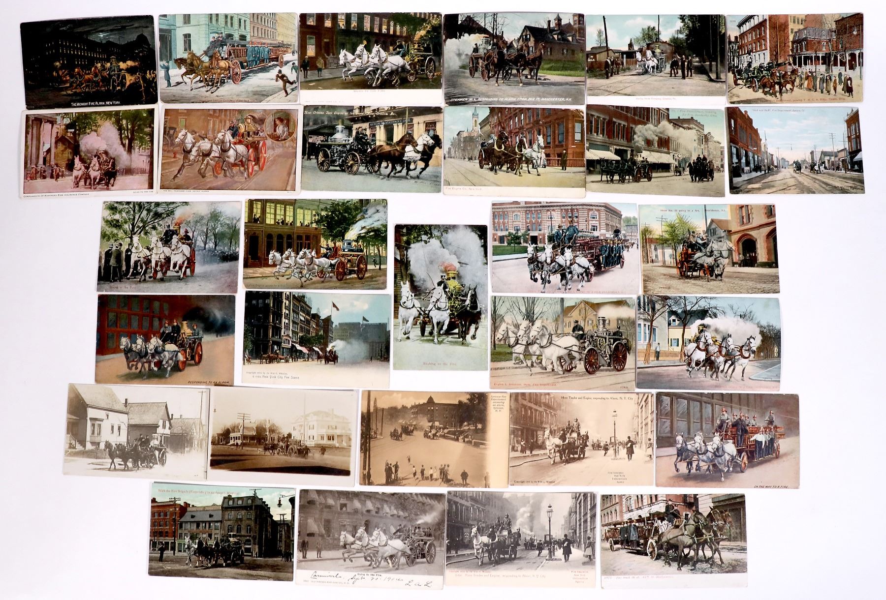 Early U.S. "Responding to the Fire" Postcards (30). Color (24), Amber (2), RPs (2) B&W (2) (1907-1916). No Duplicates.