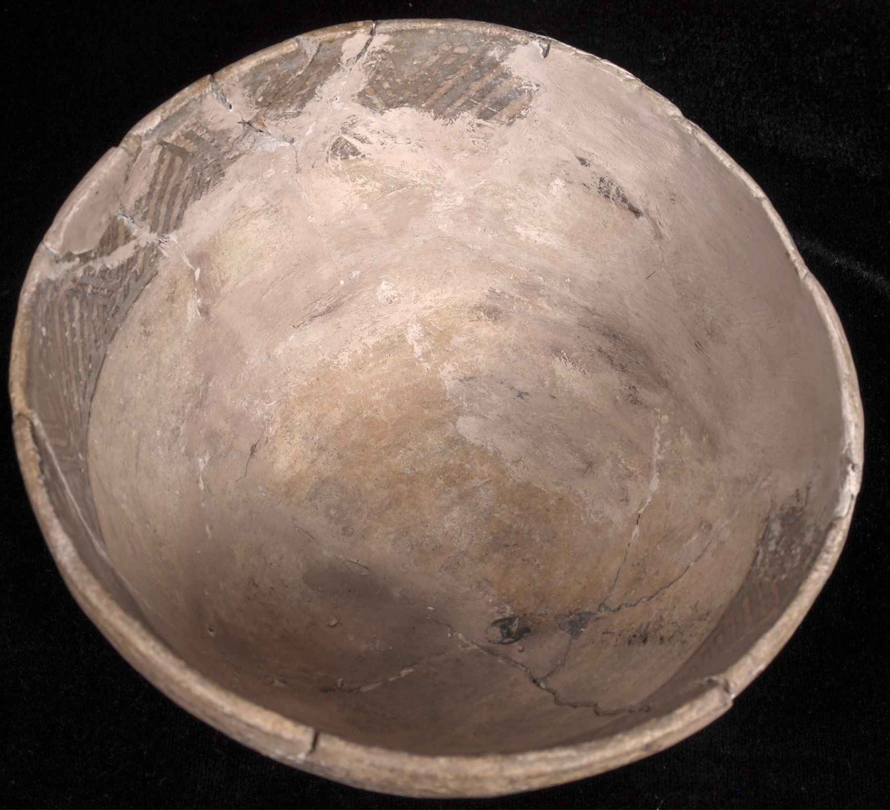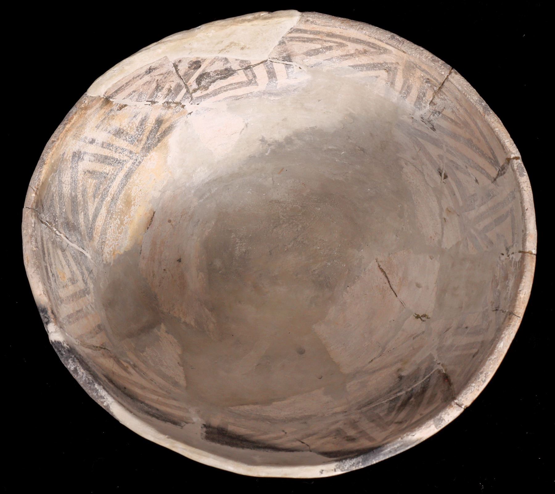3 grey early Southwest pots that have all be professionally restored or repaired. 8.5" internal stripe, 6.5" internal triangle pattern, 9.75" black internal and external pattern. Sold as is, please inspect. Gary Bracken Collection