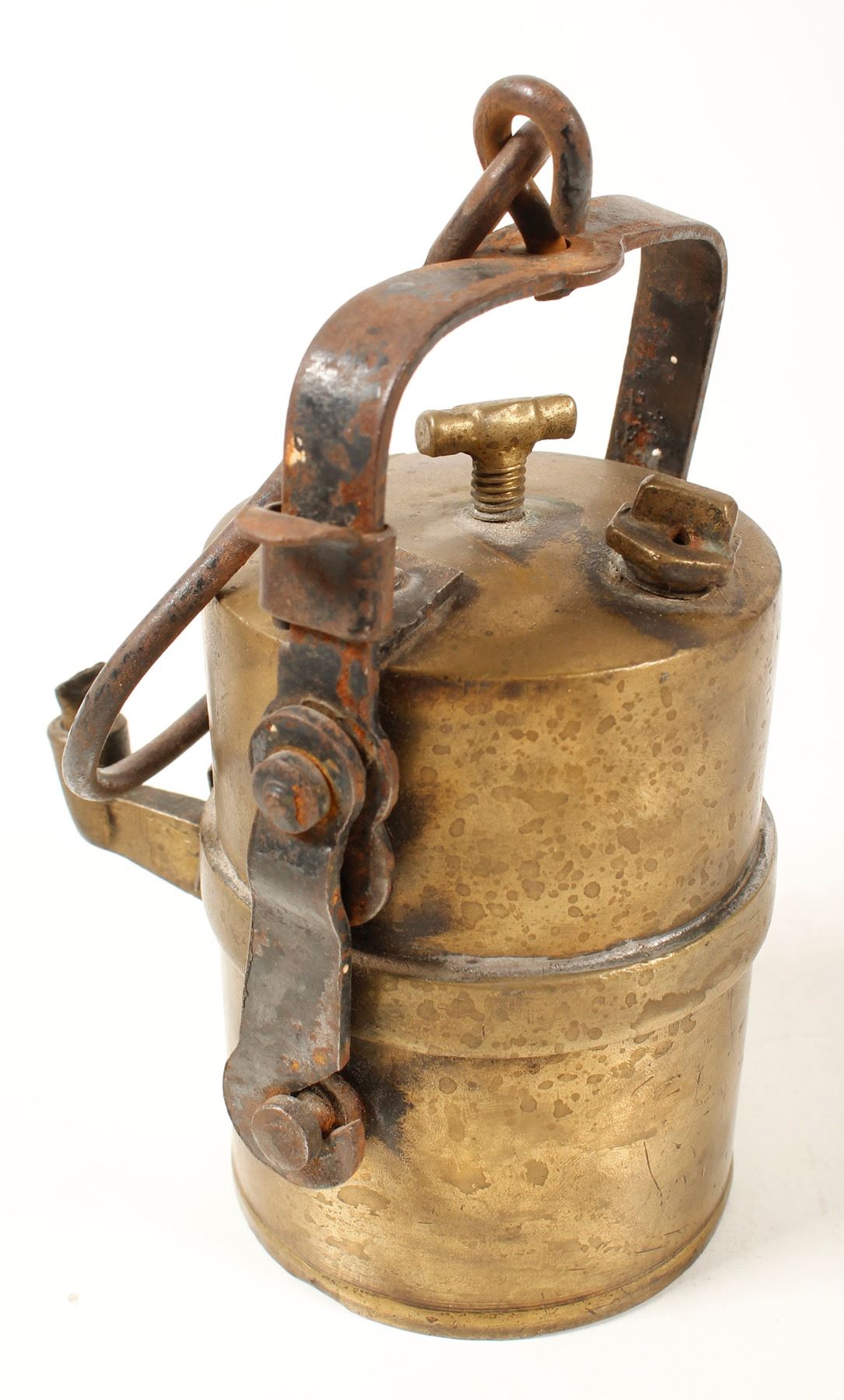 Unusual early heavy duty brass carbide with no markings. Resembles an early Wolf but it's difficult to tell if this is American or European. State: City: HWAC#: 47245 Date: