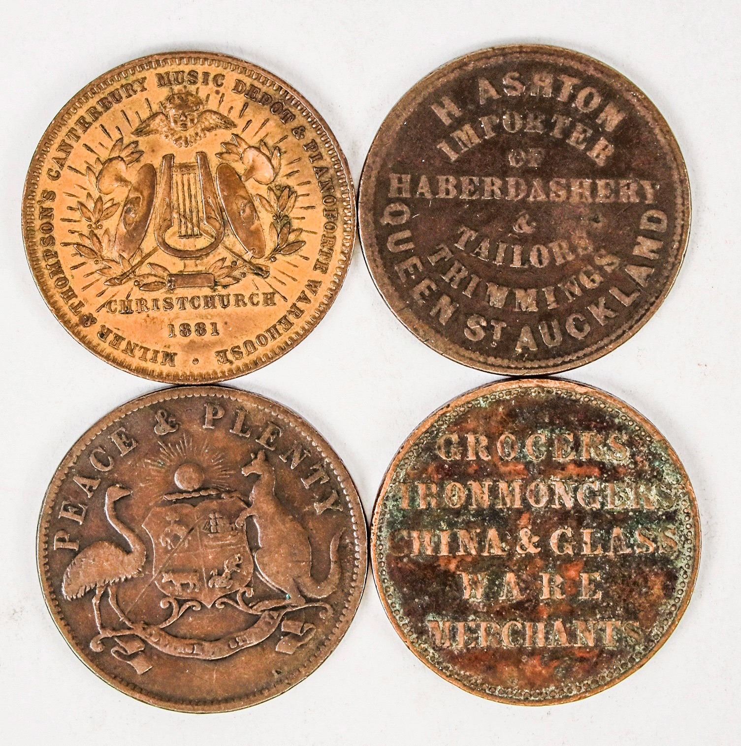 Lot of four: 1) 1858 Melbourne Victoria; 2) Murray and Christie Castlemaine; 3) 1867 New Zealand, Auckland; 4) 1881 Miller & Thompsons Canterbury Music Depot Christchurch.