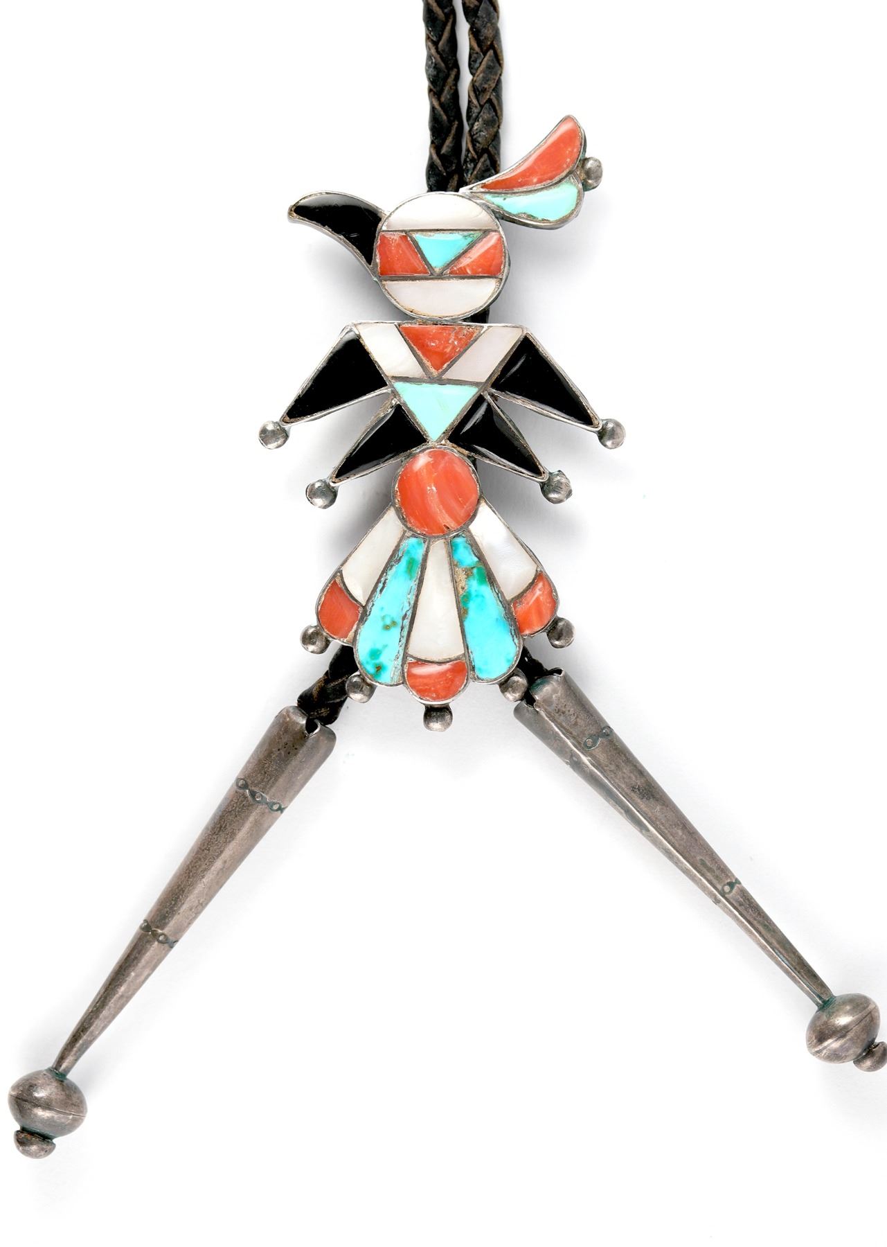 Beautiful Peyote bird attributed to Frank Vacit. 3" x 1.75". Great bright colors in turquoise, spiney oyster, jet, mother of pearl.