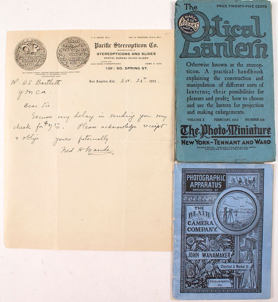 Three items consisting of 1 letter, 2 pamphlets (one entitled "The Optical Lantern', 1912) Date: Location: HWAC# 55154