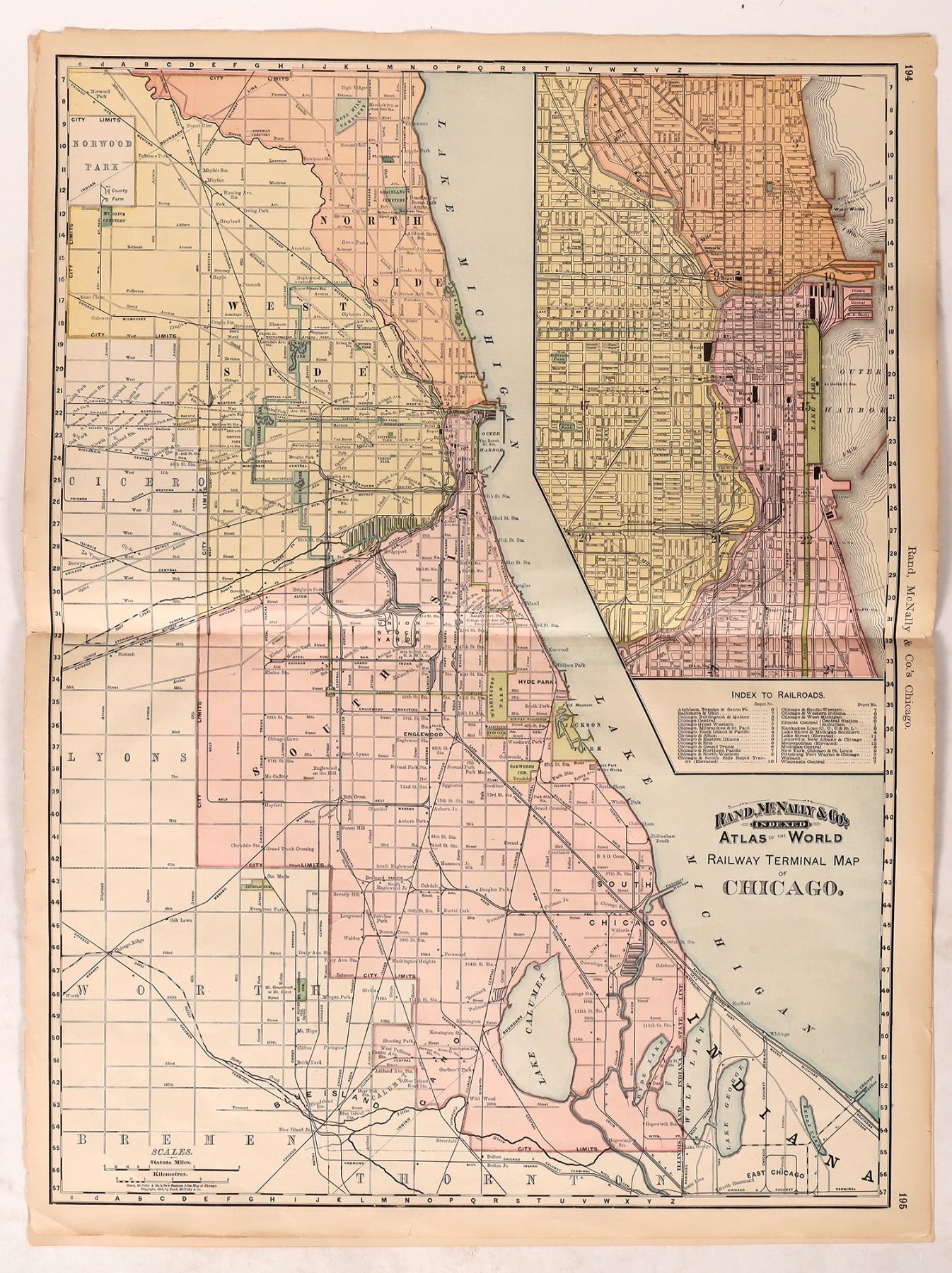 1) Chicago - Railroad Terminal Map- 1895, with inset of downtown and index to railroads (15) & depots - (27-1/2" x 21-1/2")_x000D_