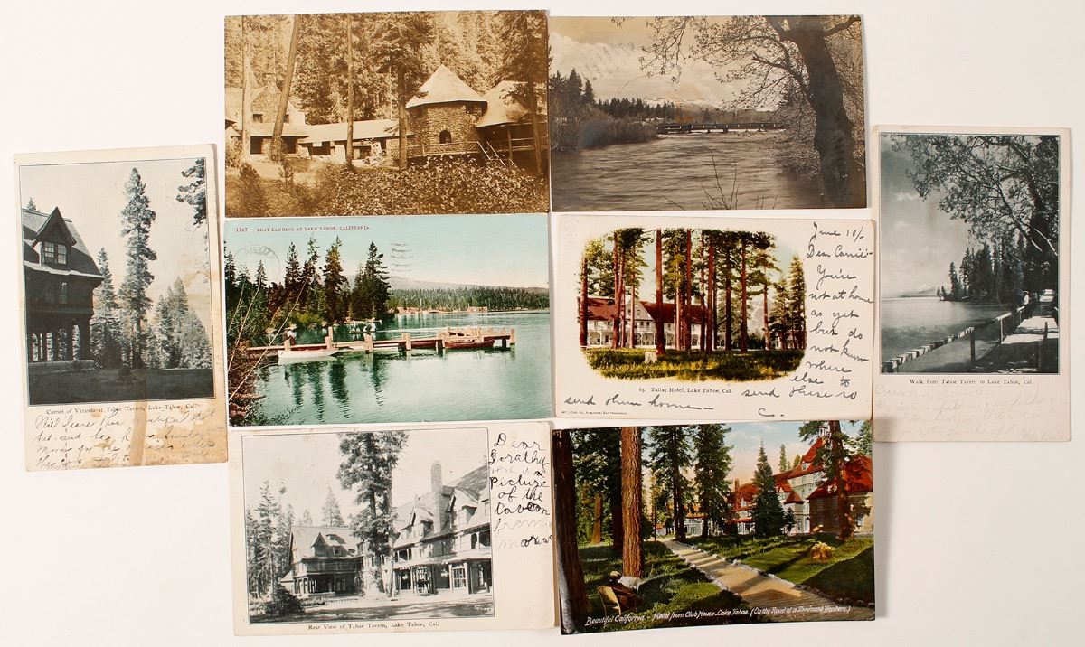 Lot of 8: Tahoe Tavern, Hotel from Club House, rear view Tahoe Tavern, Tallac Hotel, Boat Landing, walk from Tahoe Tavern to Lake Tahoe, two unidentified scenic cards. All with postmarks. City: Lake Tahoe State: California Date: 1903-1908 ID# 44840