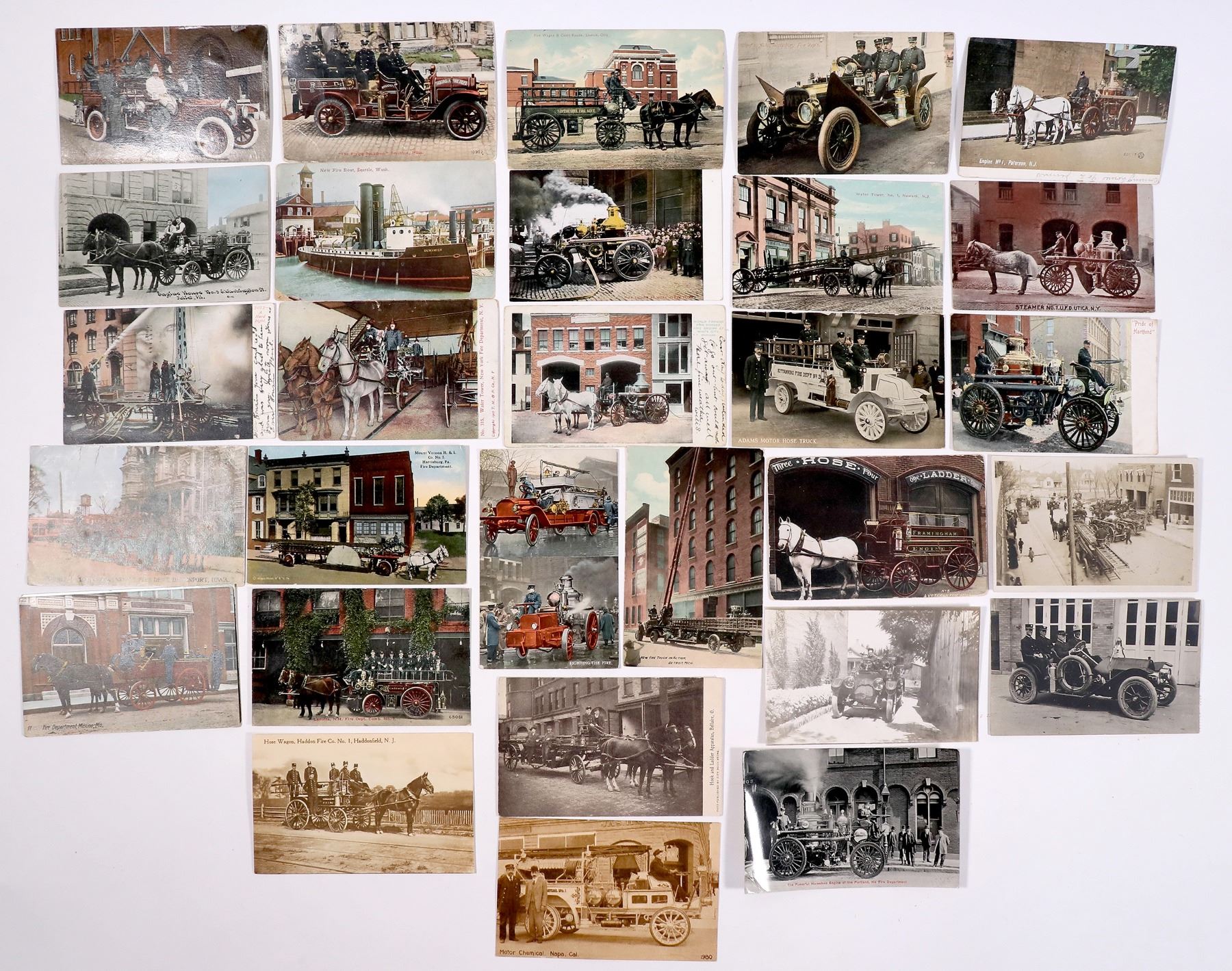 Early U.S. "Fire Apparatus on Display" Postcards (30). Color (23), RP's (3), B&W (2), Amber (2). No Dup's (1905-1915).