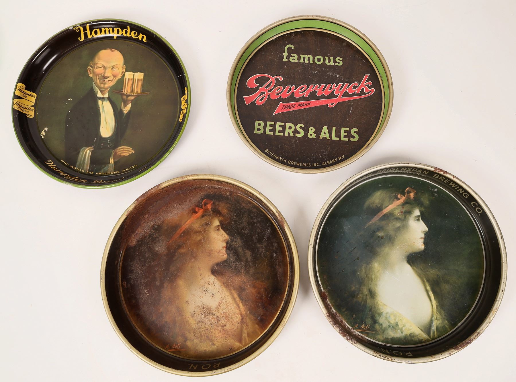 4 Eastern ber trays, all around 13". Hampden, Willimansett.Berwyck, Albany, NY, c. 1930. 2x c. 1930's Christian Feigenspan, Newark, NJ-1 in poor condition.