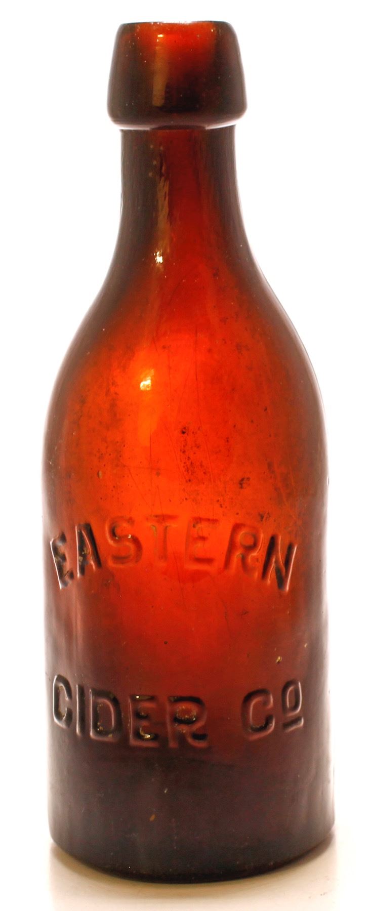 Eastern (au) / Cider Co. // Medium to deep, red amber. Good quality glass, and would sparkle if cleaned . Just a little dirty inside, not stained. Two small, 1/32" base pin heads.And, a right side base pit..minute.Also, small bruise in top of lip. Otherwise, a really nice specimen, with no other defects.(RH). State: California City: San Francisco Date: 1877-1882 HWAC# 30014