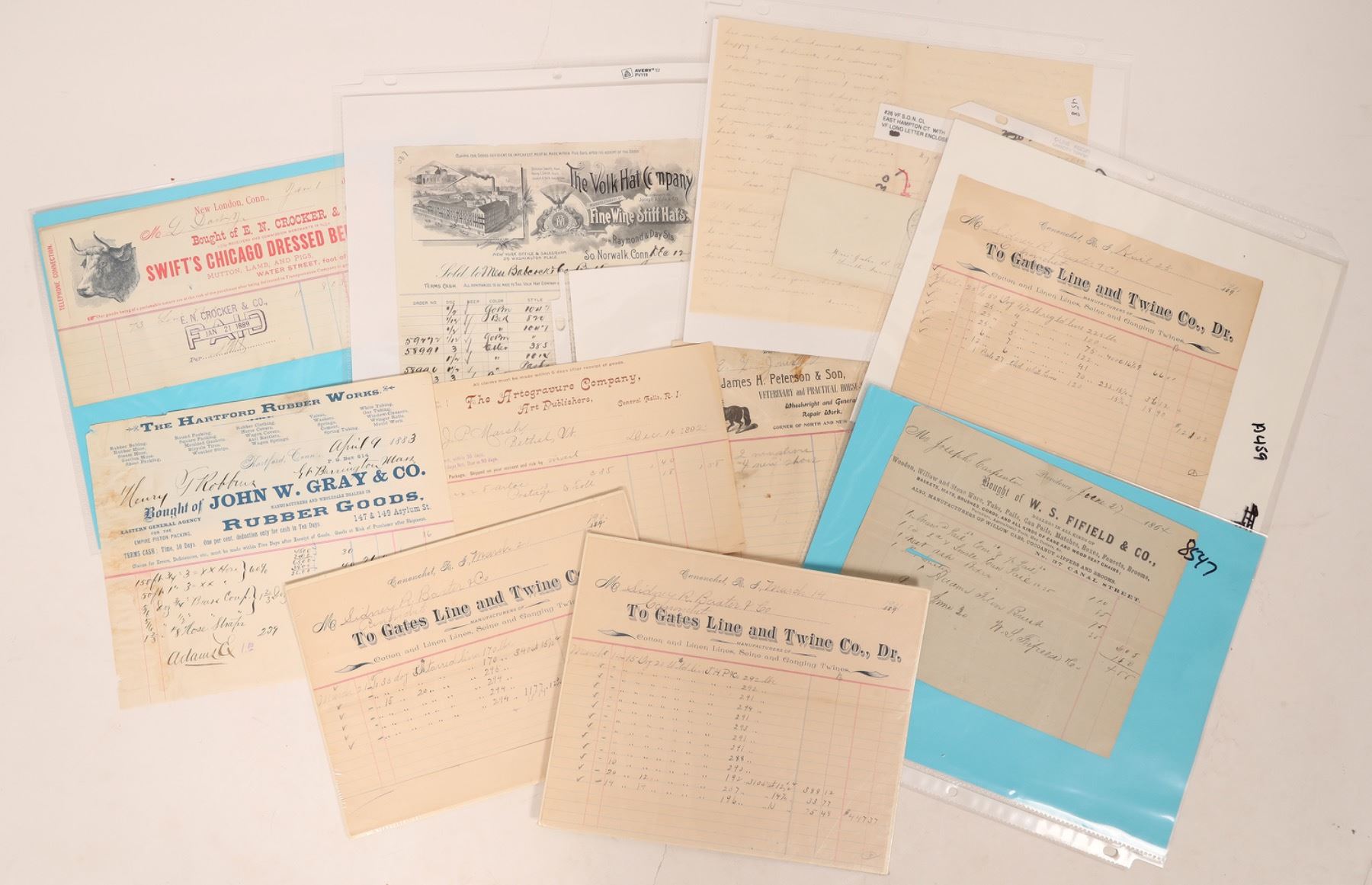 A dozen letterheads and billheads from the states of Rhode Island, Delaware and Connecticut, c1864-1902. Please see photo(s) for more details.