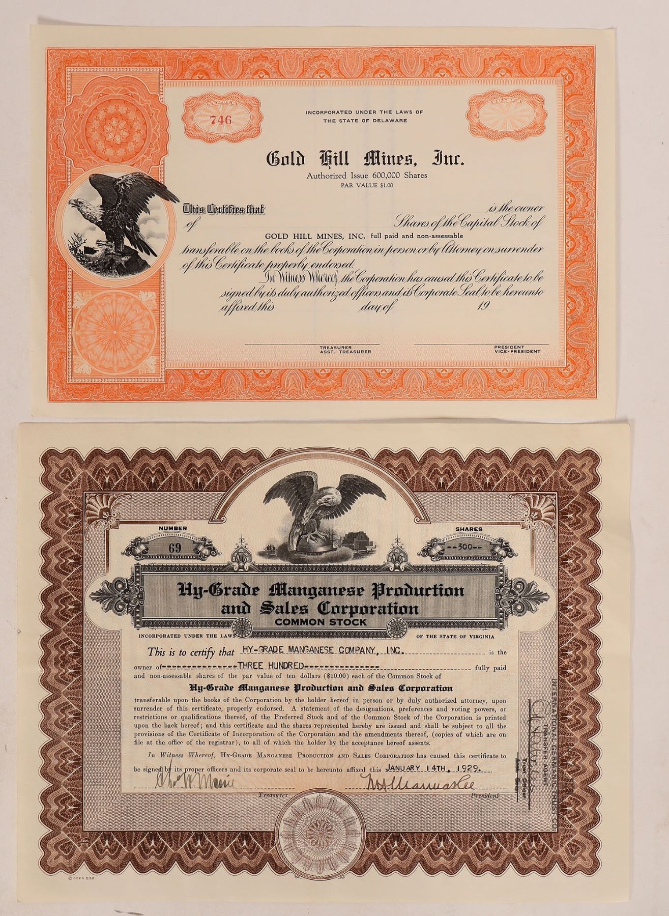 Issued 1929 Hy Grade Manganese Production and Sales. Unissued Gold Hill Mines.