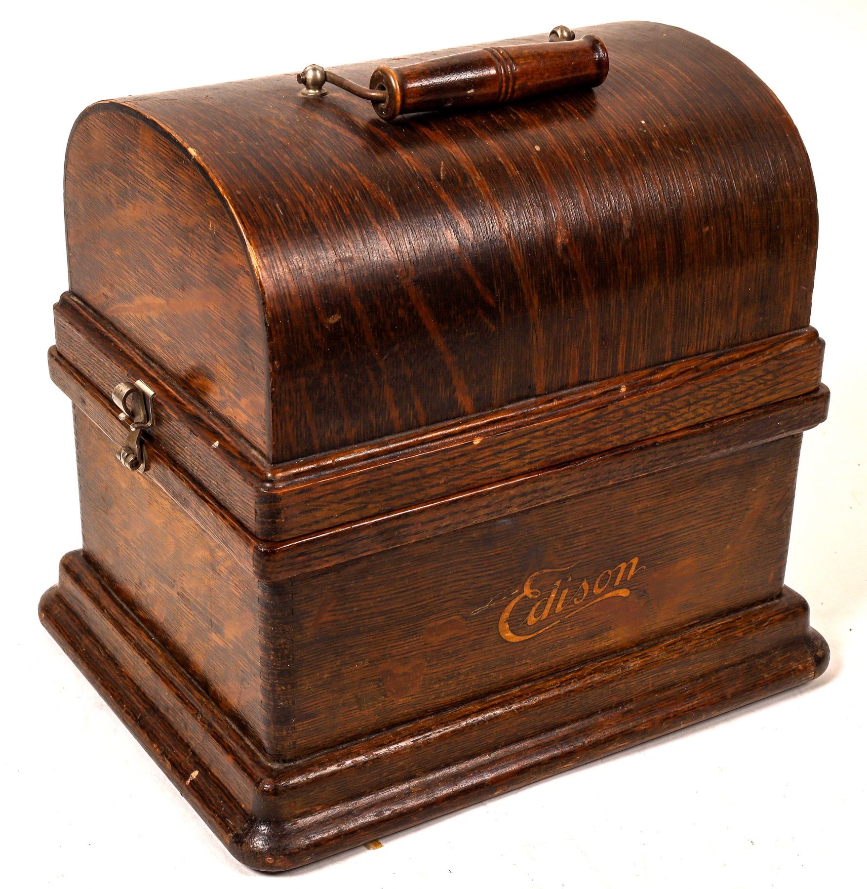 An Edison Fireside Phonograph from the very early 20th century. This appears to be the "Model A" made around 1905 and uses wax cylinders. There is also the speaker horn, It is missing the crank, as well as the support rod and chain for the cone, Cabinet is in very nice condition with few scratches or dings. A great conversation piece. West Orange New Jersey 1905