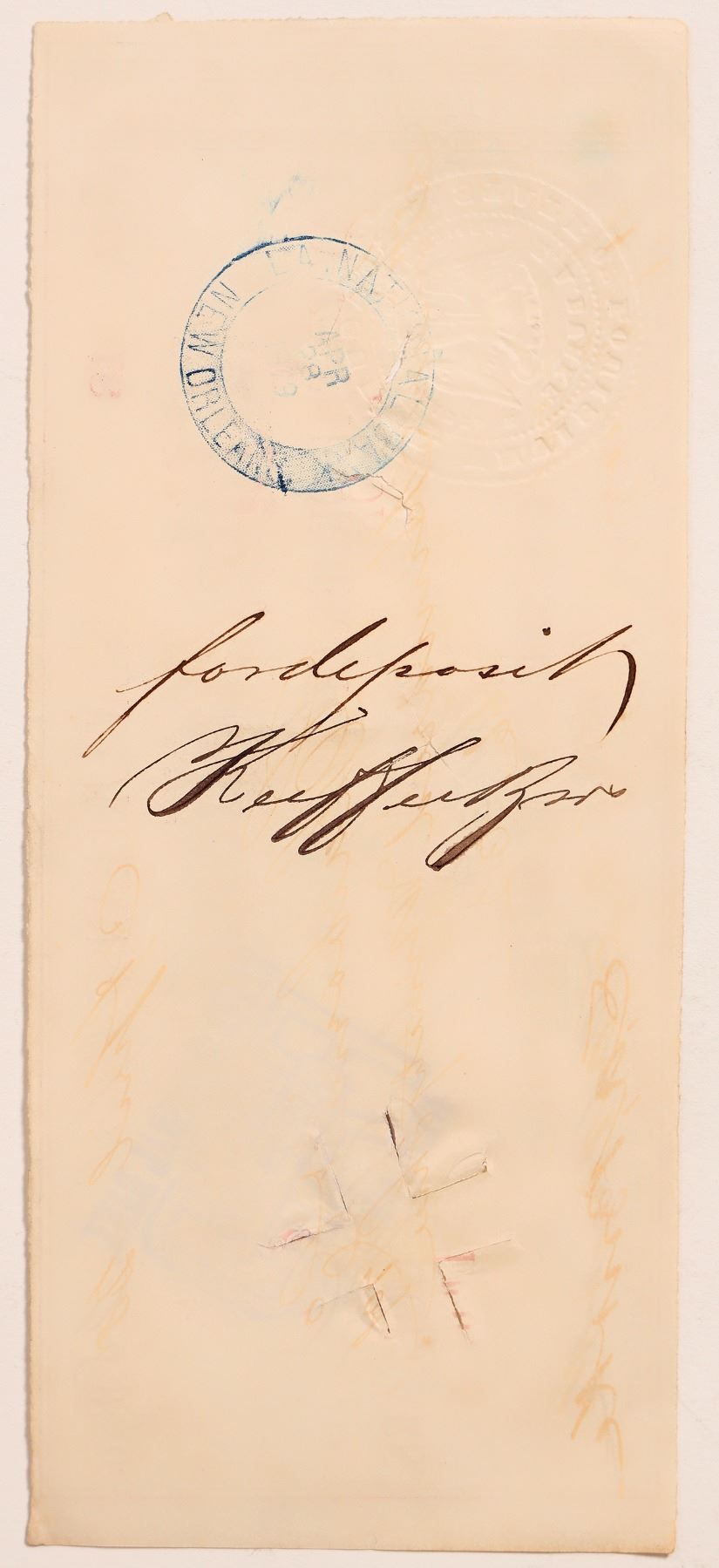 1879 Edward A Burke signed check. "Edward Austin Burke or Burk (September 13, 1839 -September 24, 1928), was the Democratic State Treasurer of Louisiana following Reconstruction. Burke later fled to Honduras after it was discovered that there were misappropriations of state treasury funds. While in Honduras Burke became a major land owner and held government positions within Honduras' nationalized railway systems. He remained an exile until his death nearly four decades later." from Wikipedia