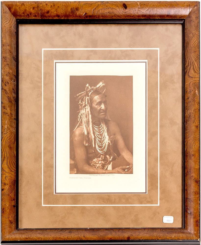Photogravure by Edward Curtis--Running Owl-Piegan. From a copyright photo by Curtis, 9.5" x 6.5", beautifully matted and framed 17.5" x 14.5". Date: 1910 Location: HWAC# 56850