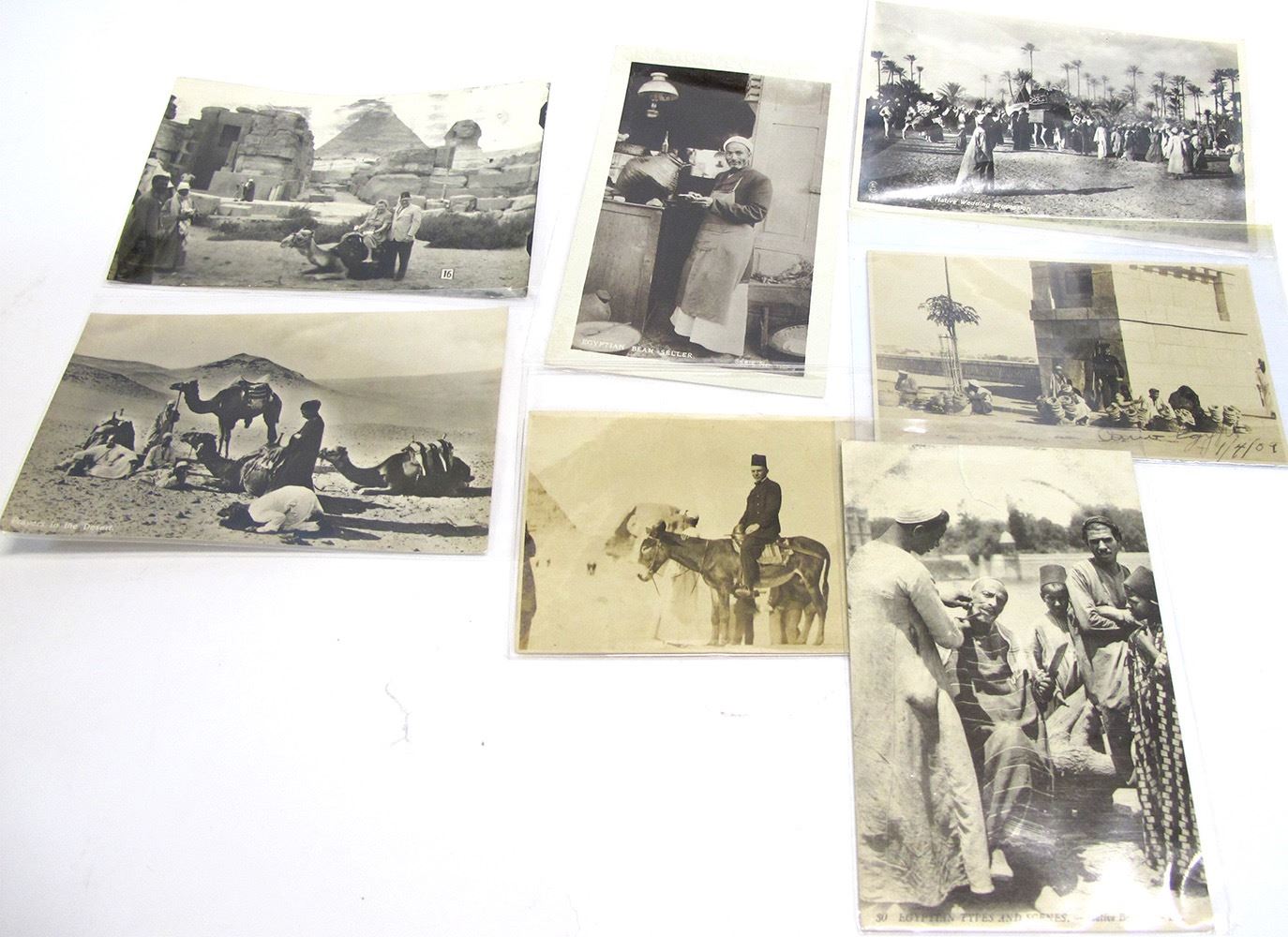 Postcards of a man getting a beard trim(ripped), a lady on a camel next to a Shriner, native wedding procession, photo of a man on a donkey, camels and prayers, and more Date: Location: zEgypt HWAC# 53912