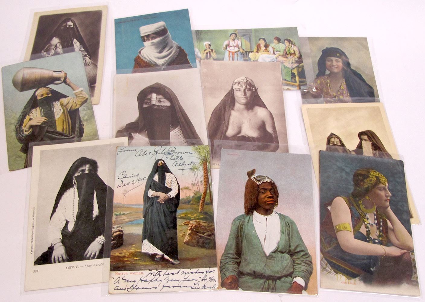 Assortment of Egyptian women in traditional dress, some with an unusual tube in their face covering. Date: Location: zEgypt HWAC# 53914
