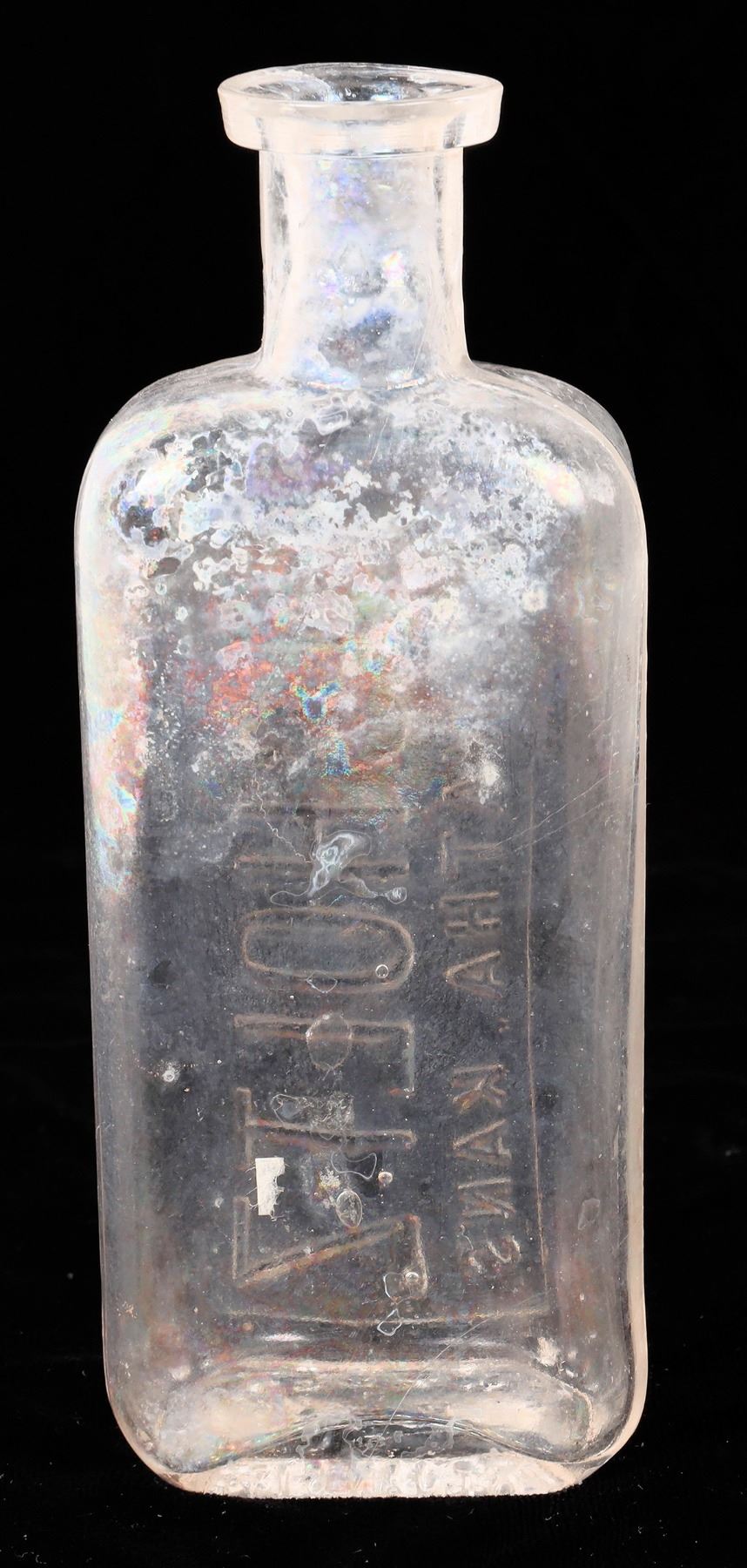 Embossed Eicholtz/Hiawatha, Kans. medicine bottle. 5.5". Front ding.