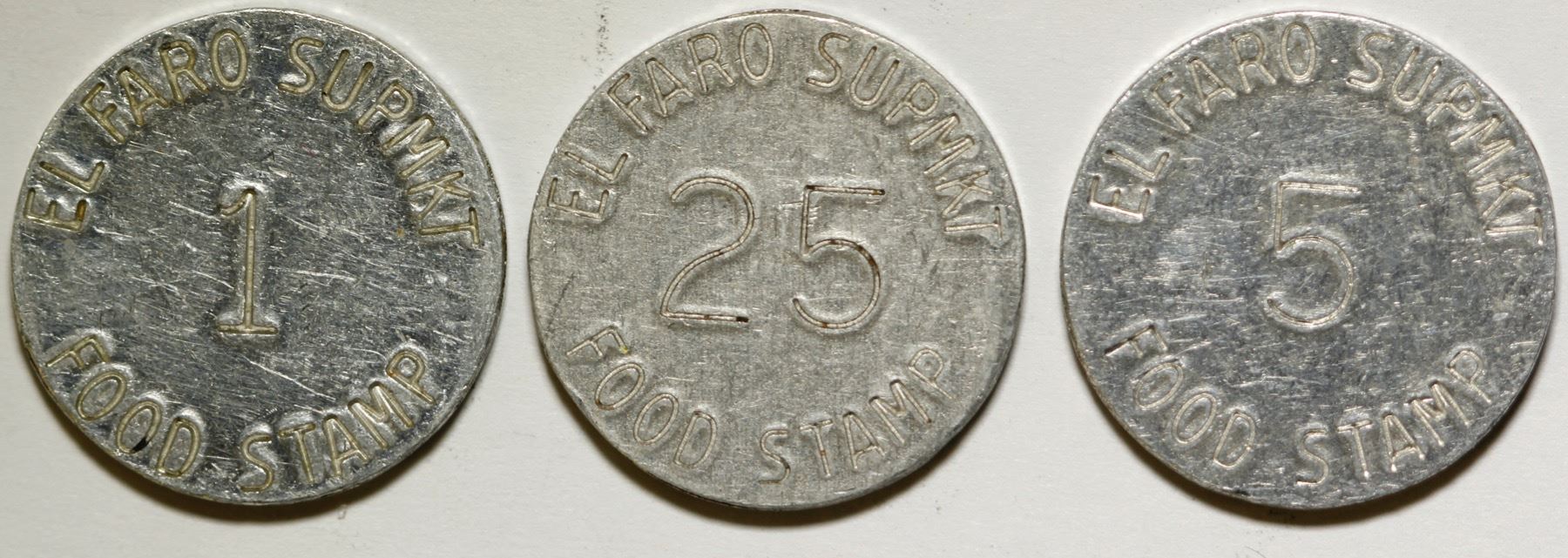 Lot of three: GF 1, 5, 25 food stamp. Uniface. State: Texas City: Weslaco Date: HWAC# 84076