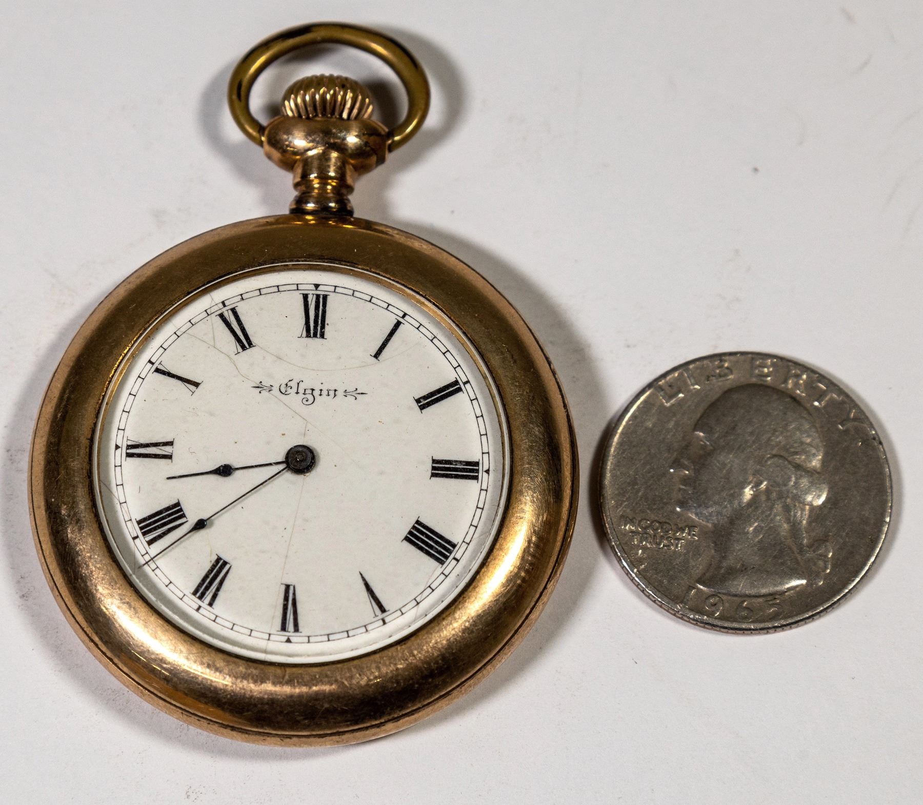 Beautiful Elgin open face 14K yellow gold antique pocket watch. No auxiliary (subdial) dial. White enamel face, roman numerals. Good condition, non-working. State:Illinois City:Elgin Date: Provenance: