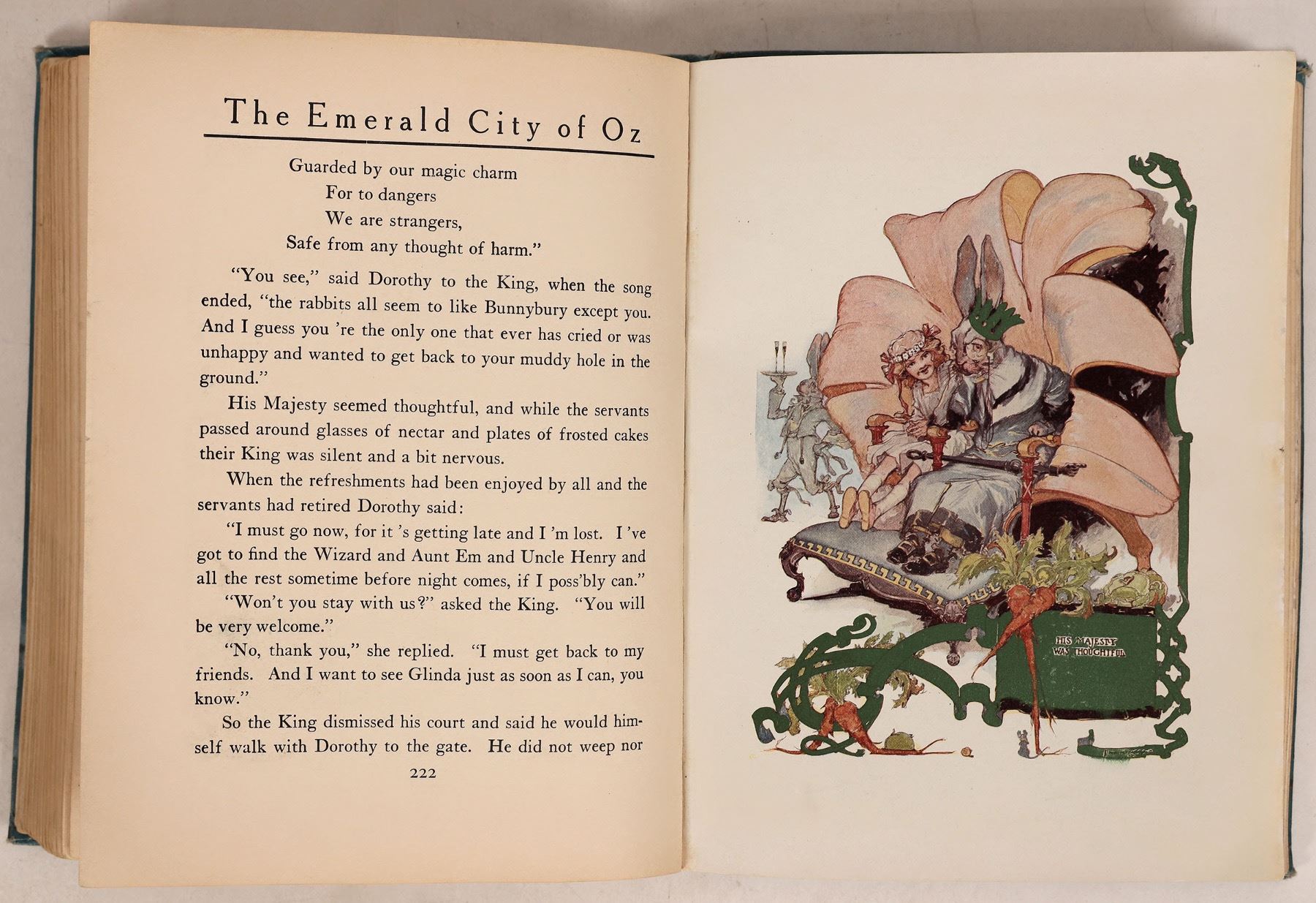 1910 first edition, The Emerald City of Oz by L Frank Bloom. Binding has issues, several front inscriptions. Sold as is, please inspect.