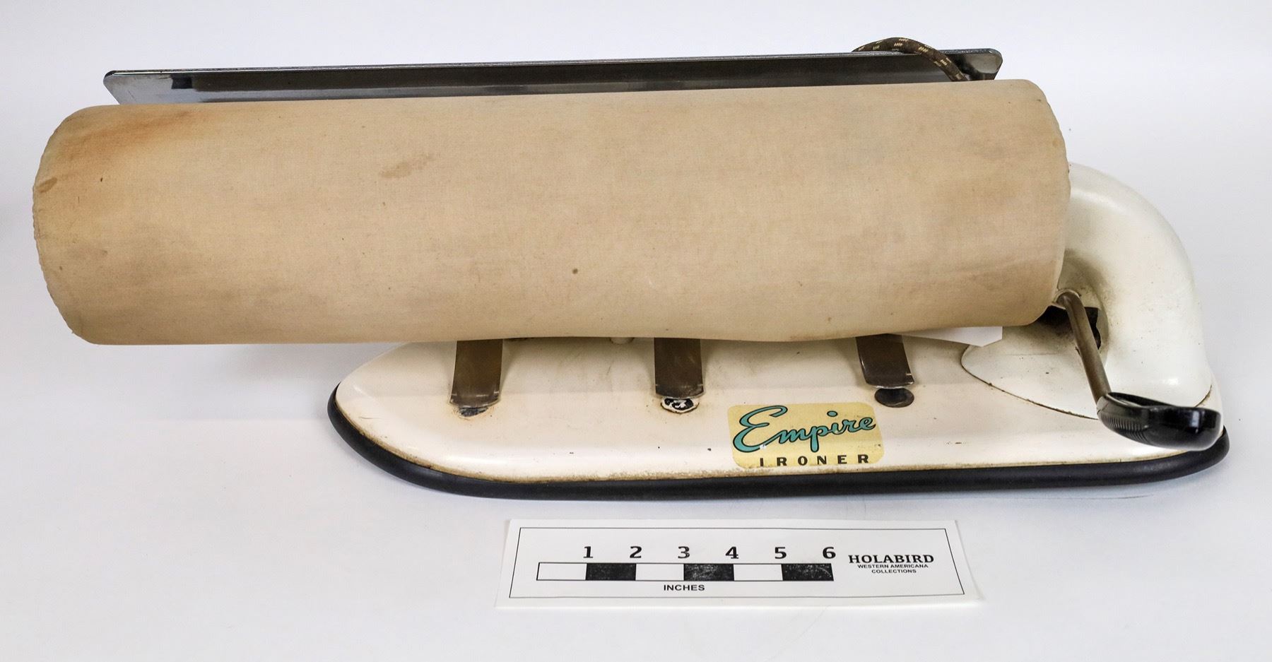 This is an Empire Mangle Ironer. This was an item that made ironing less of a chore, since the clothes didn't have to be absolutely dry when put through the presser. This is a hand-operated model, my Mom had a foot-operated one. This item measures about 26" wide and stands about 10" high. It appears to be in very nice condition. Has not been plugged in, but it has a cloth cord that appears to be in good condition. Please see photos for more detail and condition.