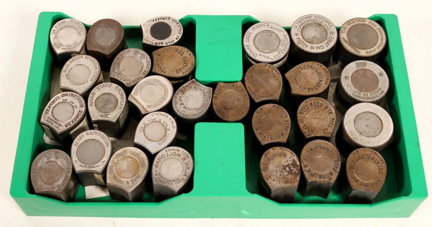 Twenty Eight encased cent (and quarter) dies from the NW Territorial Mint Historical Die Collection. Various topics and places.
