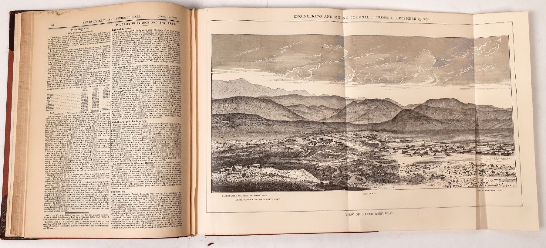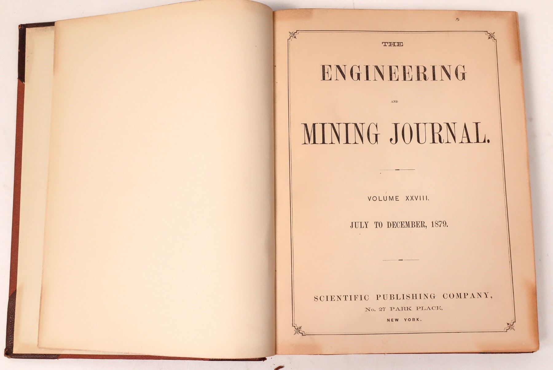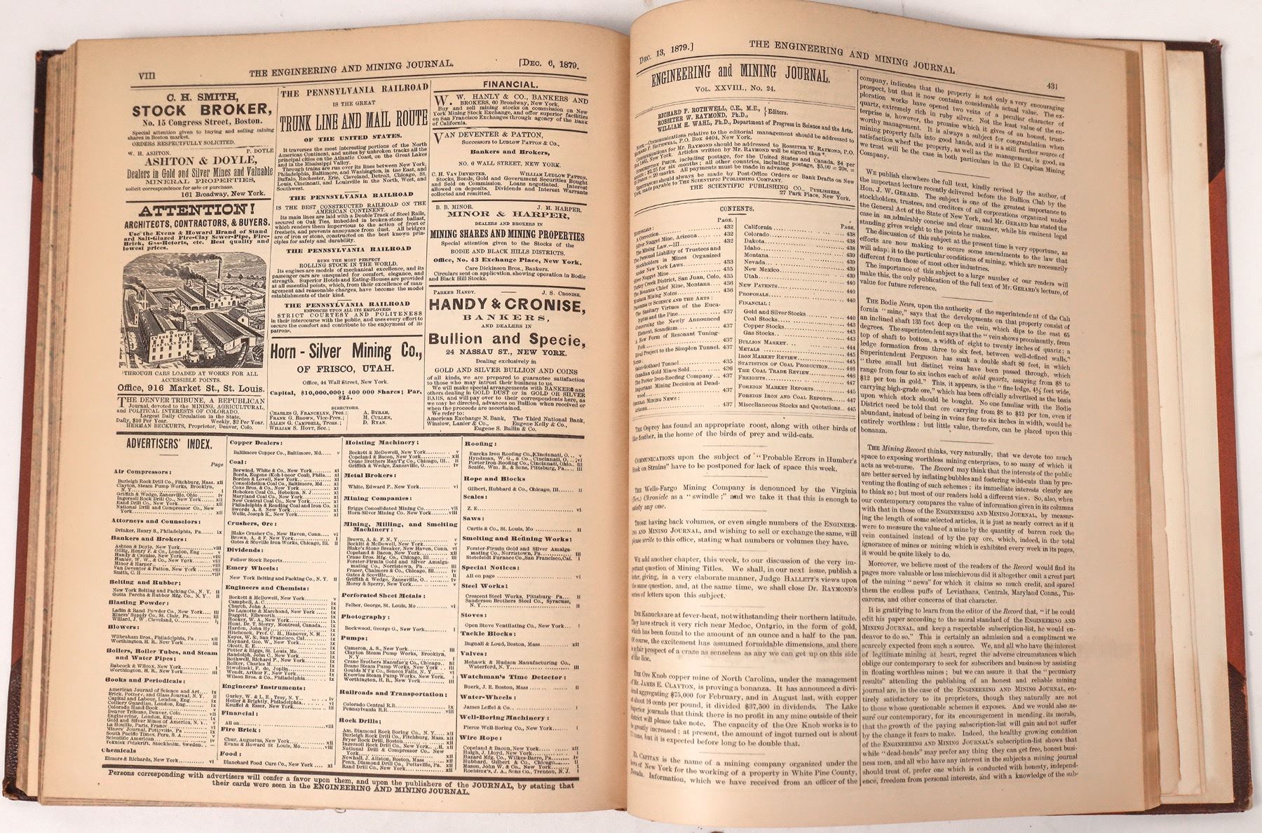 The Engineering and Mining Journal. Volume XXVIII. July to December 1879. Published by the Scientific Publishing Company, New York. Includes information about mining stocks and the mining industry in general. 484 pages. 10 x 13.25 inches. Good condition.