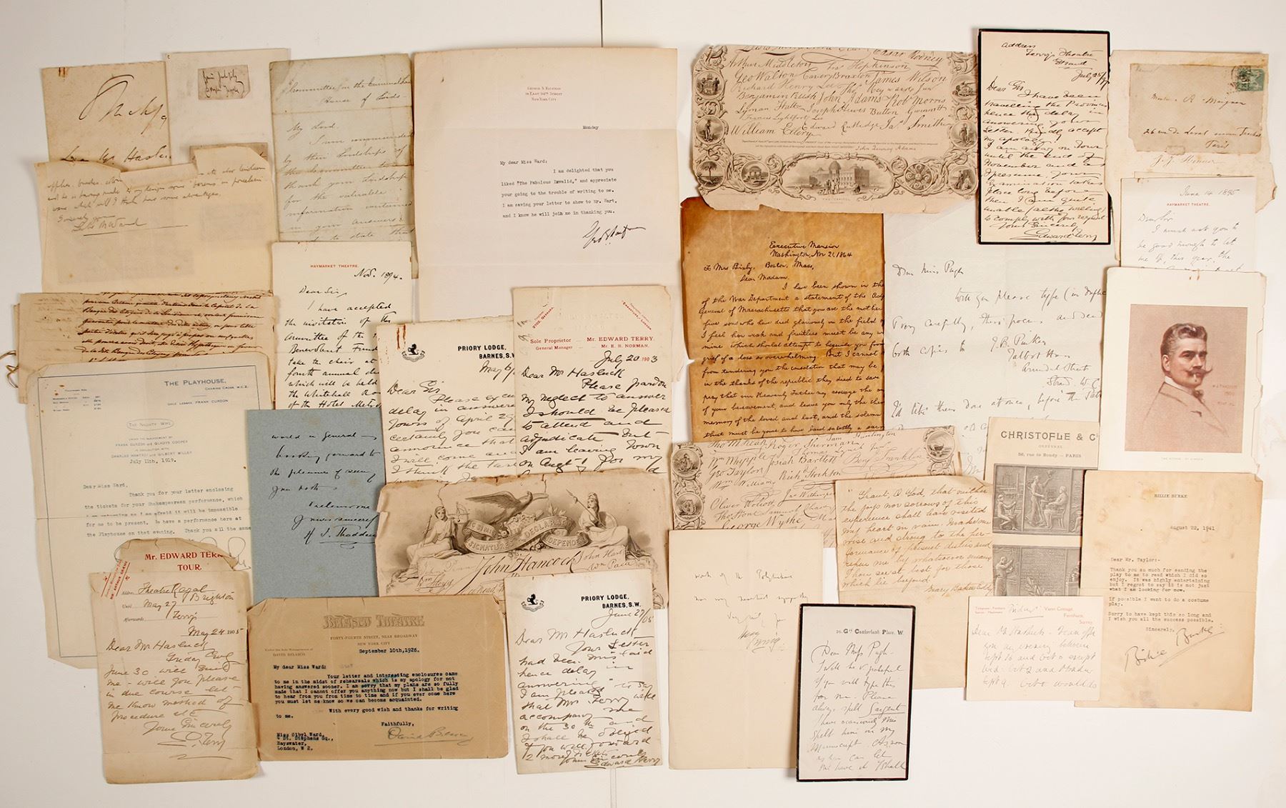 Approx 30 autographs on small pieces of paper letters and cards. Ch. Lamb, Tho. Hoop, J. Locke, Menvels John, LM Ward, Lord Brougham?, George S. Kaufman on letterhead, Herb ? on Haymarket Theatre card, Gladys Cooper, HJ Thadeus, several Edward Terry, Billie Burke, Mary Cohen, JJ Henner, Mary Baker Eddy and more. Date: Location: zGreat Britain HWAC# 73023