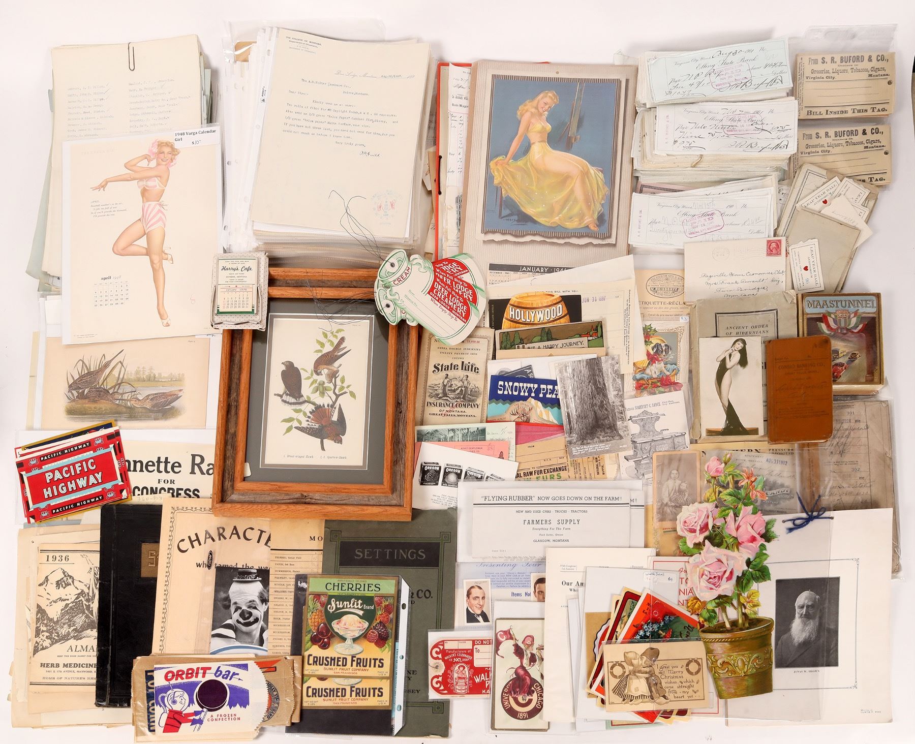 About 25 lbs. of assorted ephemera. Labels, food bags, billheads, checks, letterheads, prints.