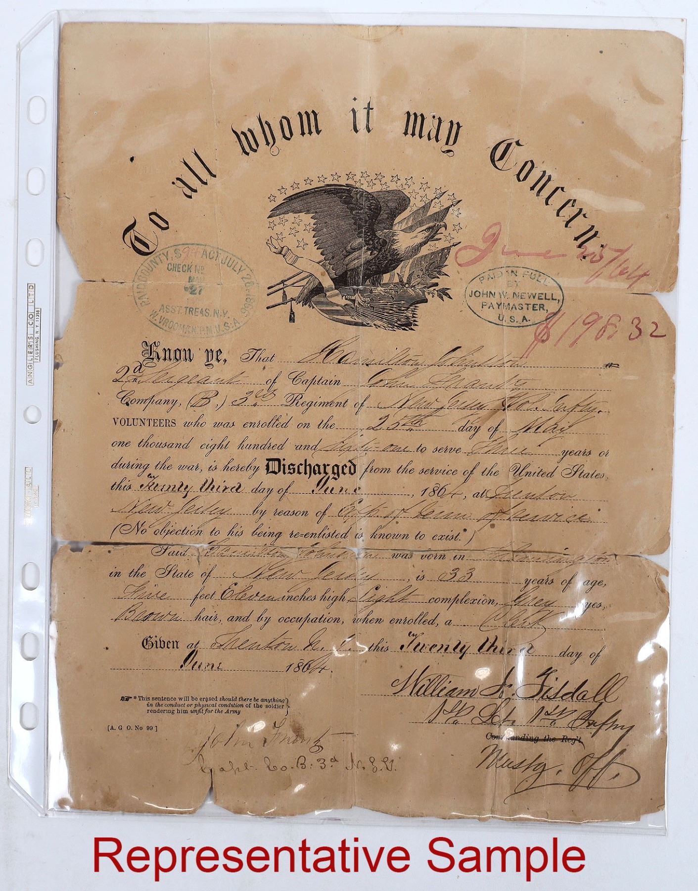 Lot of 50 plus. RPC'c, trade cards, business cards, B/W photo, Oil co. Handbooks, political drawings, There is even Discharge papers from 1864 U.S. Army and a lot more. Keep you busy for afternoon. Various cond.